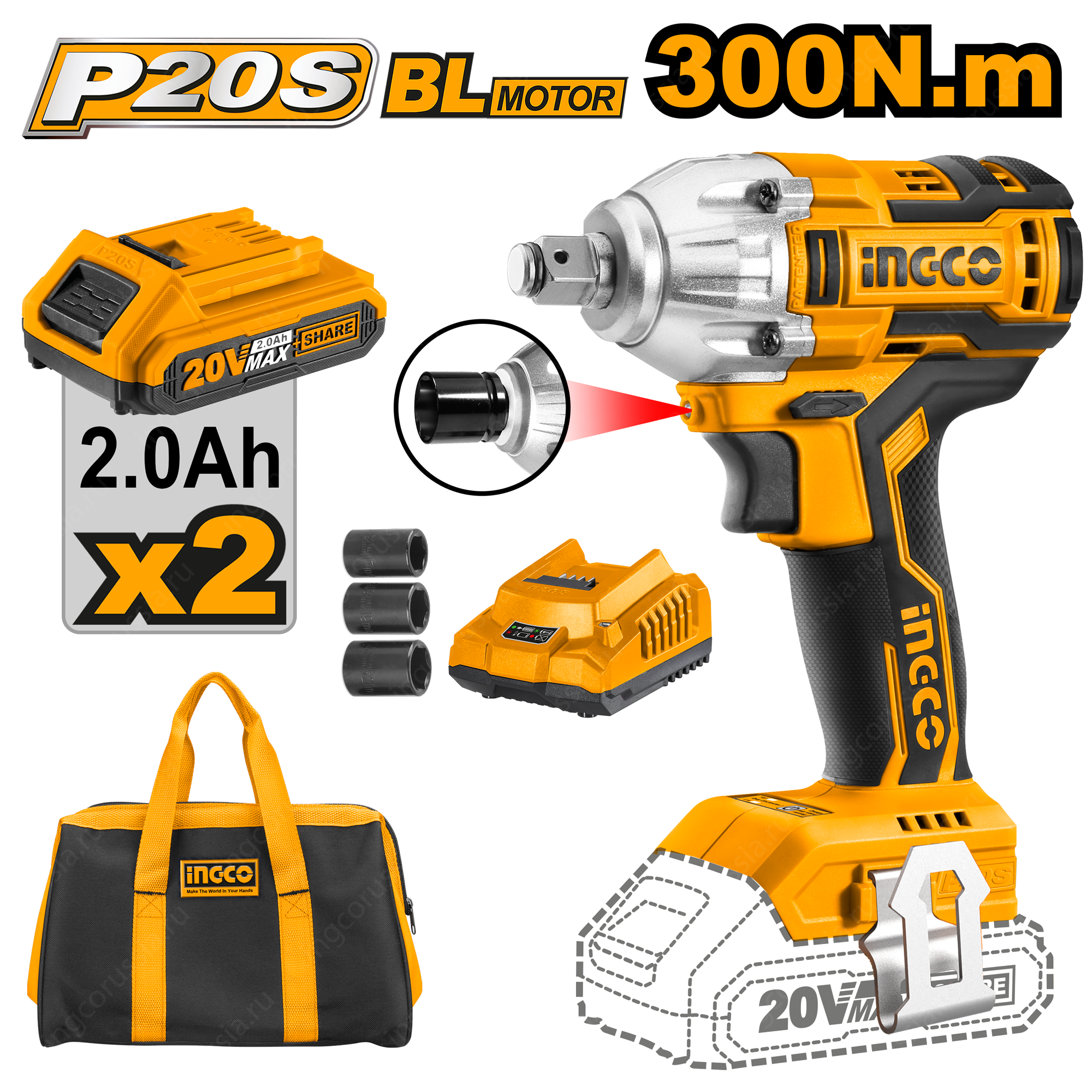 Аккумуляторный бесщеточный ударный гайковерт 20В 1/2 INGCO CIWLI2001 INDUSTRIAL