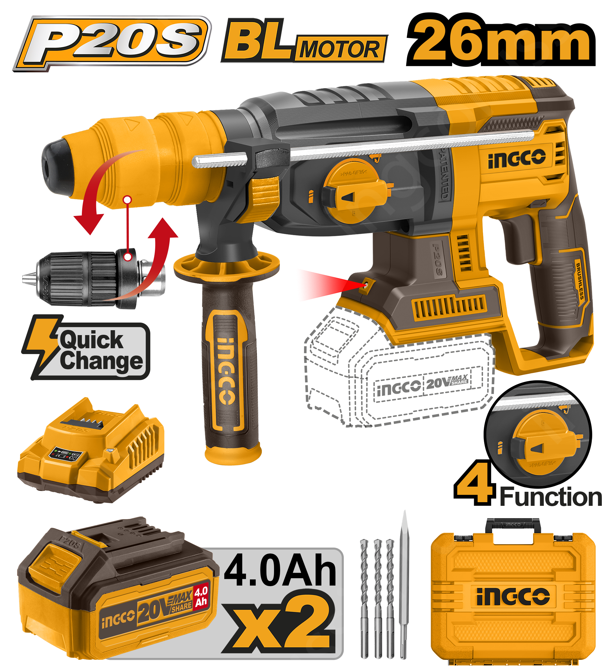 С 2шт батарейным блоком емкостью 4,0 Ач (FBLI2002)
