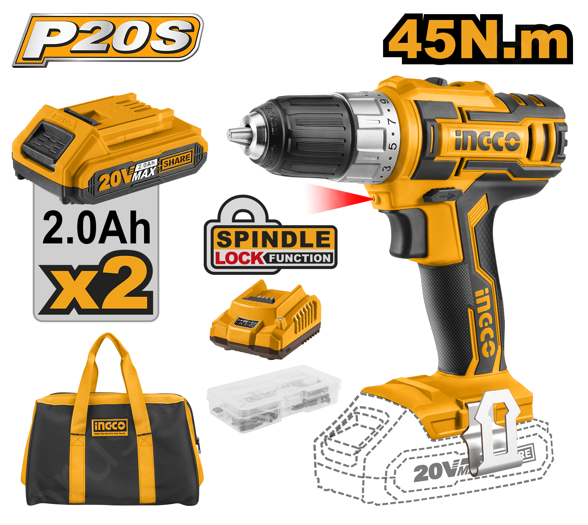 Аккумуляторный шуруповерт 20В 45Нм 15+1 INGCO CDLI2002 INDUSTRIAL серии предназначен для сверления отверстий в пластике, древесине, металле, закручивания саморезов, винтов и прочих крепёжных элементов при сборке мебели, монтаже различных конструкций, выполнении ремонтных, строительных и отделочных работ как внутри зданий, так и на улице.