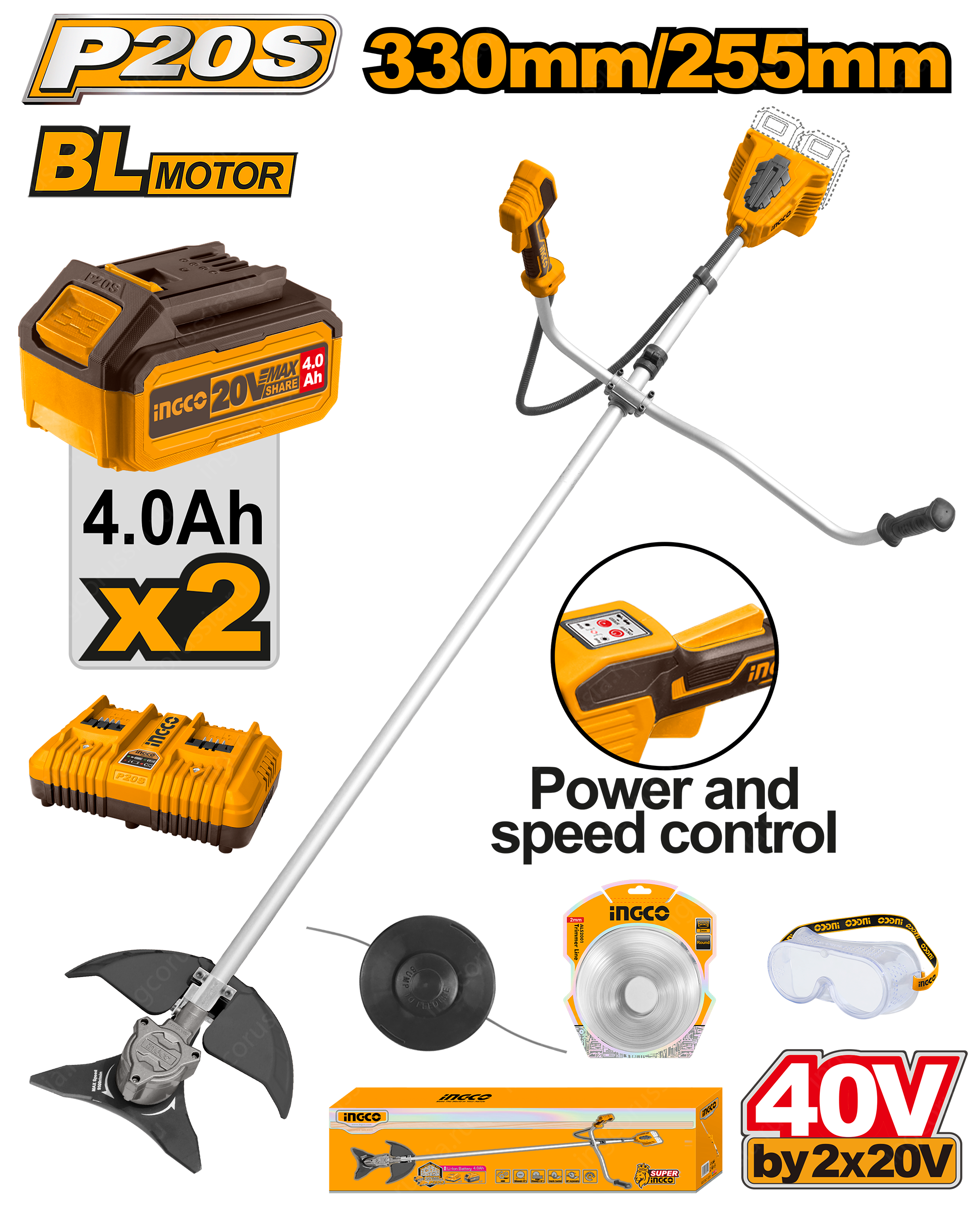 Напряжение: 40 В (20 В + 20 В)