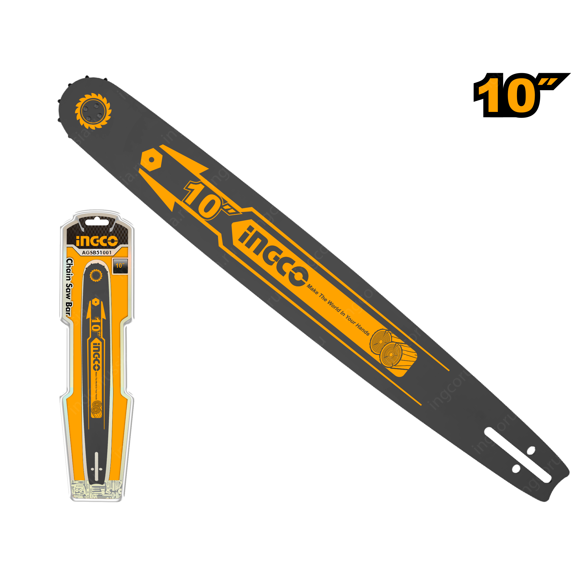 Шина для бензопилы INGCO AGSB51001 подходит для непрофессиональных небольших пил с маленькими цепями с размером звеньев 3/8 - 9,525 мм, (0,375).
