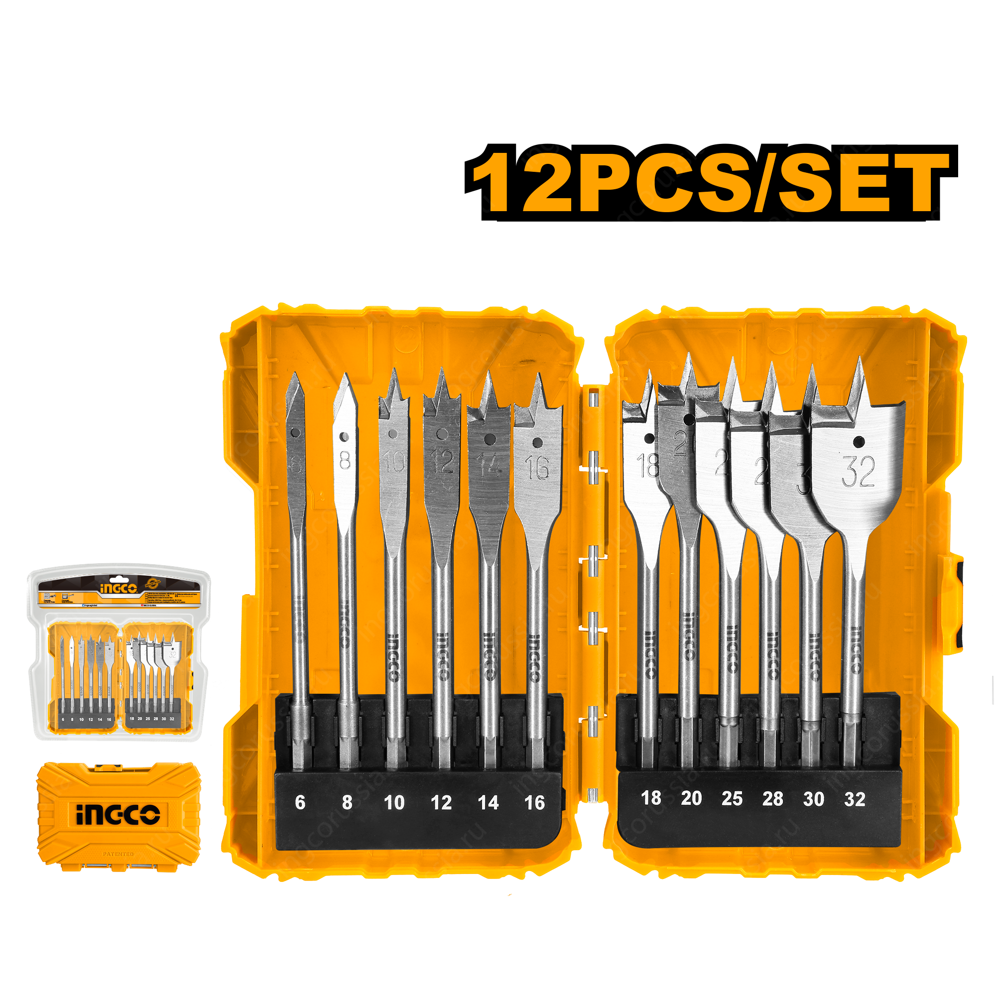 Набор перьевых сверл по дереву 12 шт. INGCO AKDL1201 INDUSTRIAL предназначен для выполнения глухих и сквозных отверстий в древесине.