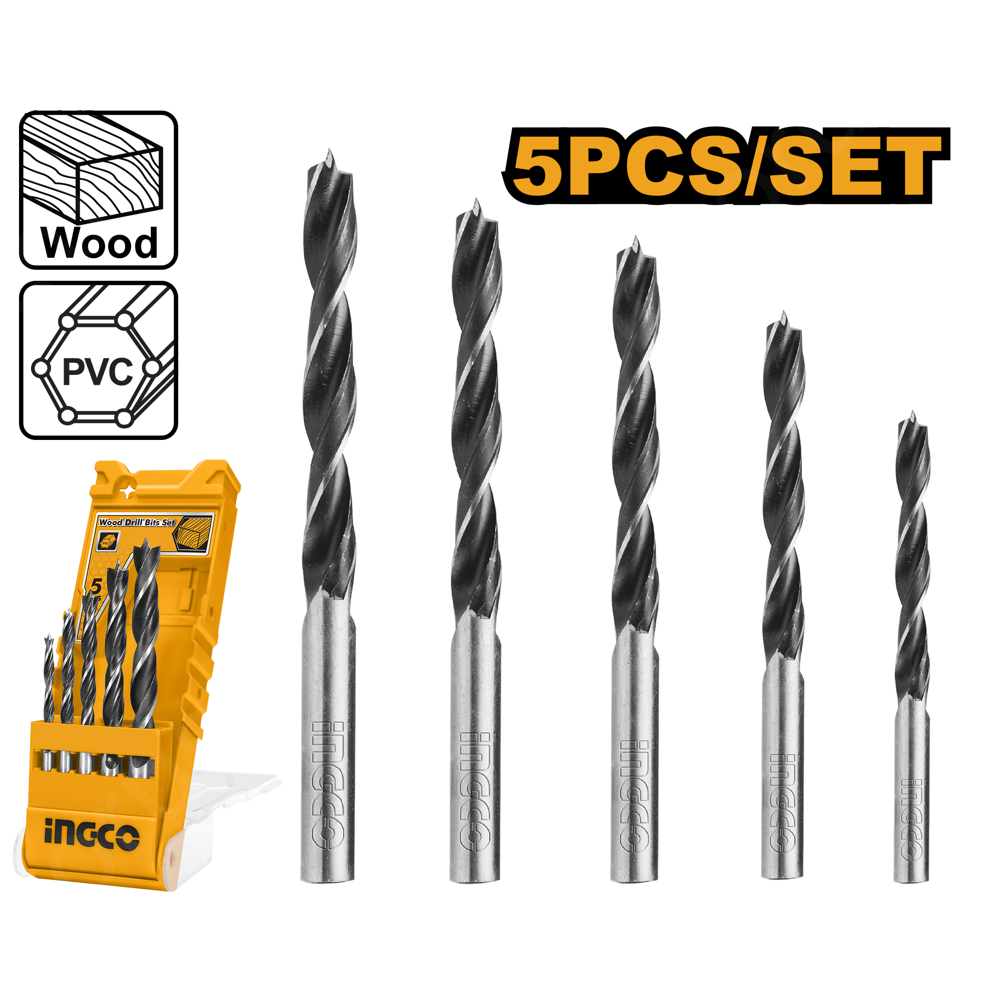 Набор сверл по дереву 5 шт. INGCO AKDB5058. Размеры: 4, 5, 6, 8, 10 мм.