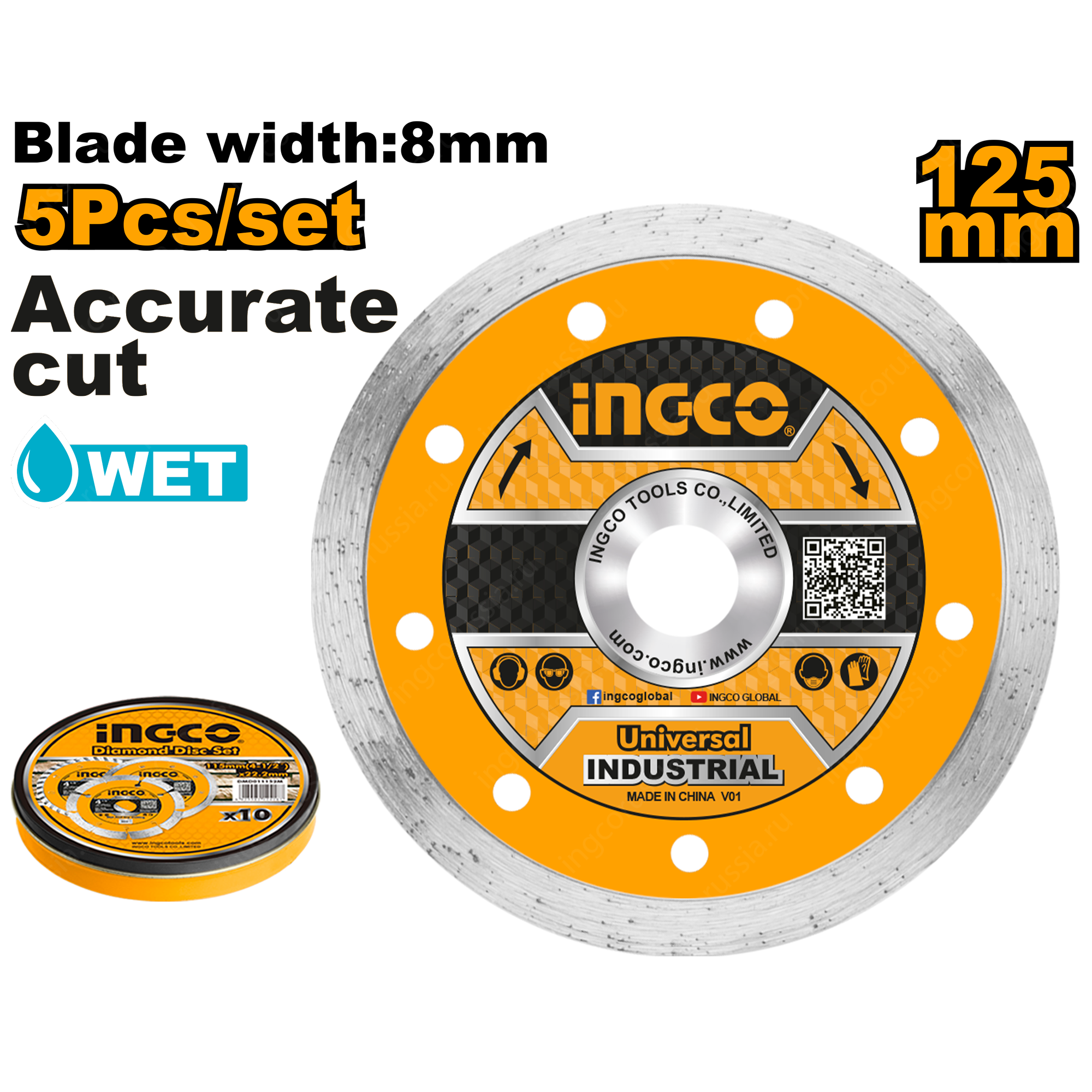 Диск алмазный сплошной по керамике 180х5х2,3х22 мм INGCO DMD021802M предназначен для мокрой резки керамической плитки с декоративным покрытием с помощью угловой шлифовальной машины.