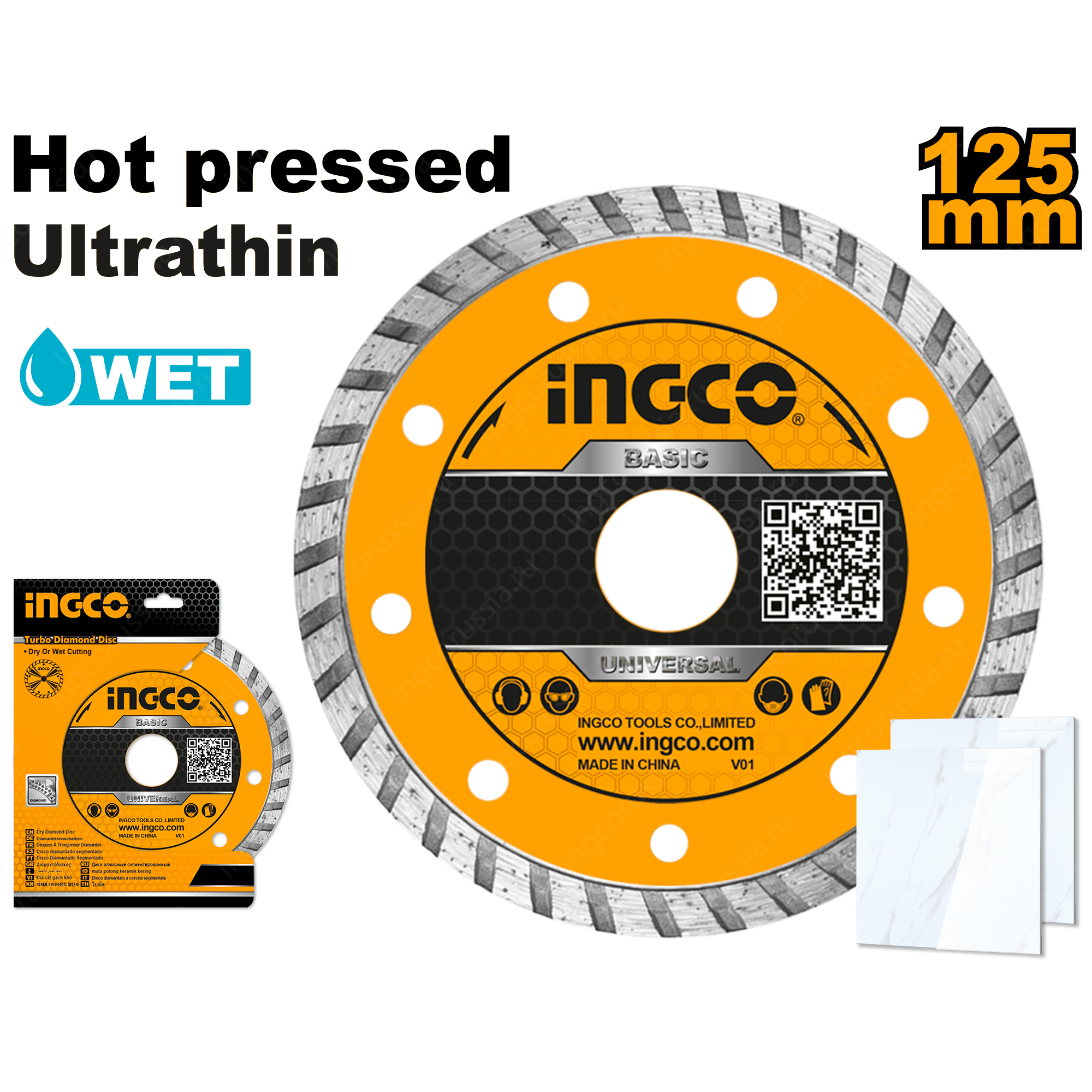 Диск алмазный ультратонкий сегментированный 125х8х1.2х22мм INGCO DMD031252HT INDUSTRIAL предназначен для универсального применения: резки керамики, плитки, мрамора, штукатурки, кирпич.
