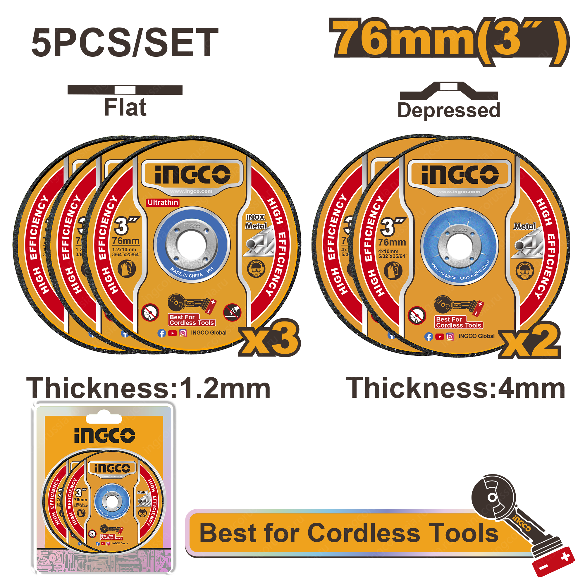 2 шт. абразивный шлифовальный диск по металлу: 76 мм (3 "") X 4,0 мм (5/32 "") X 10 мм (25/64 "")