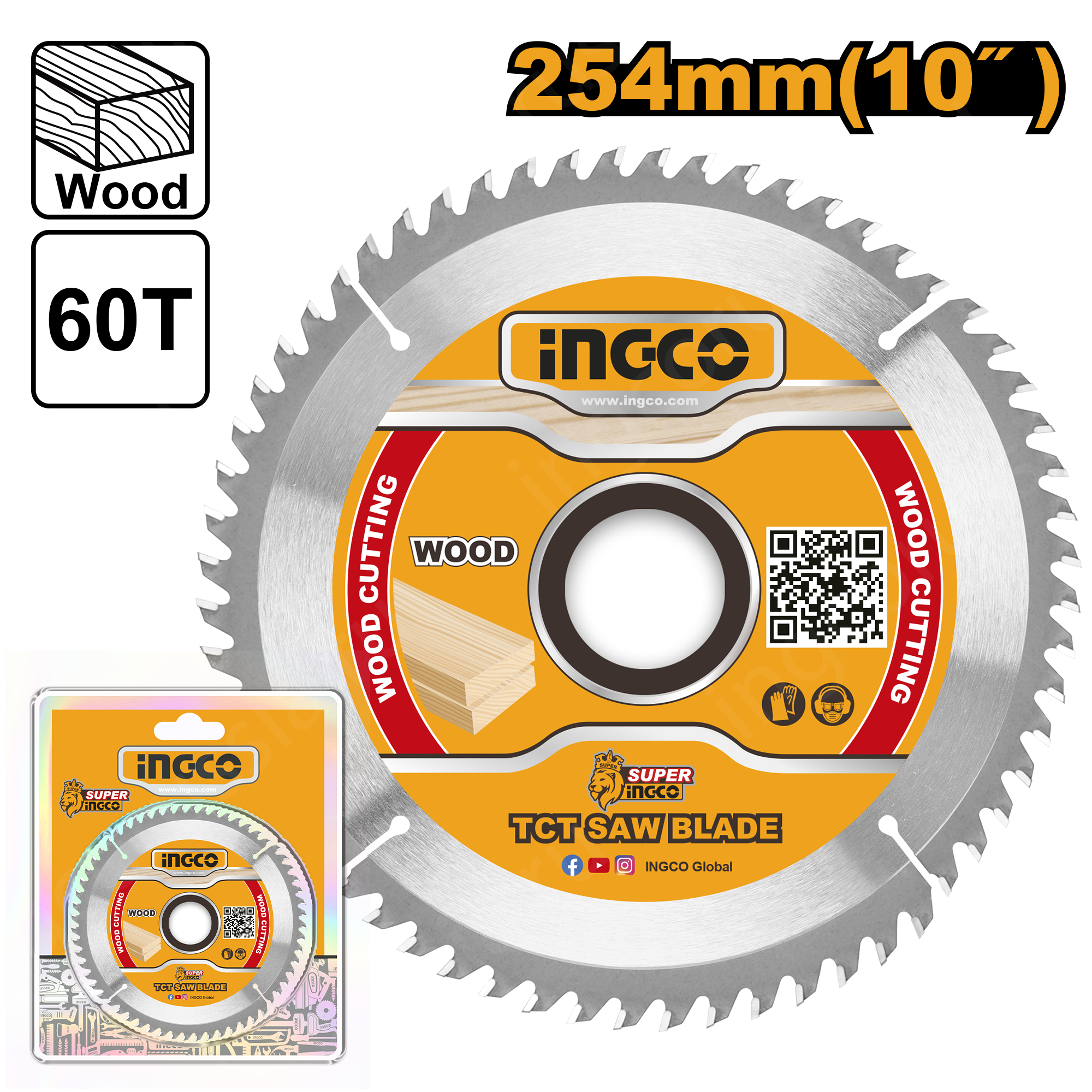 Диск пильный по дереву TCT 254х30 мм 60Т INGCO TSB125423 INDUSTRIAL предназначен для продольного и поперечного распила древесины с помощью пильного станка и торцовочной пилы.