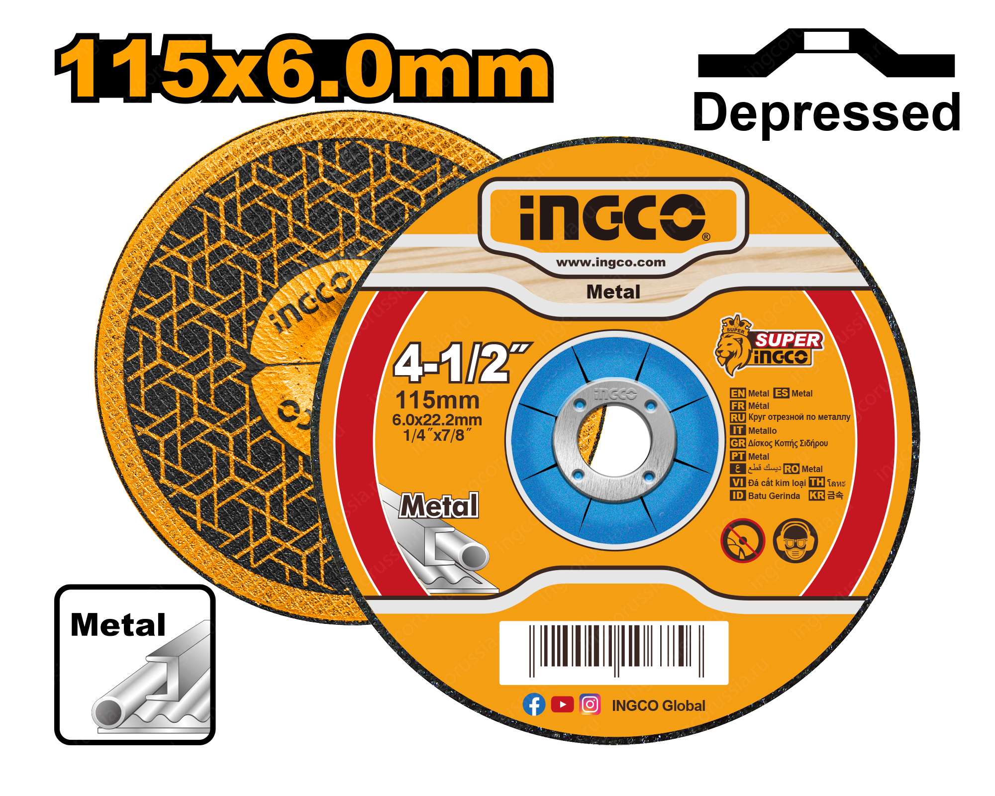 115 мм (4-1/2 дюйма») X 6,0 мм (1/4 дюйма») X 22,2 мм (7/8 дюйма»)