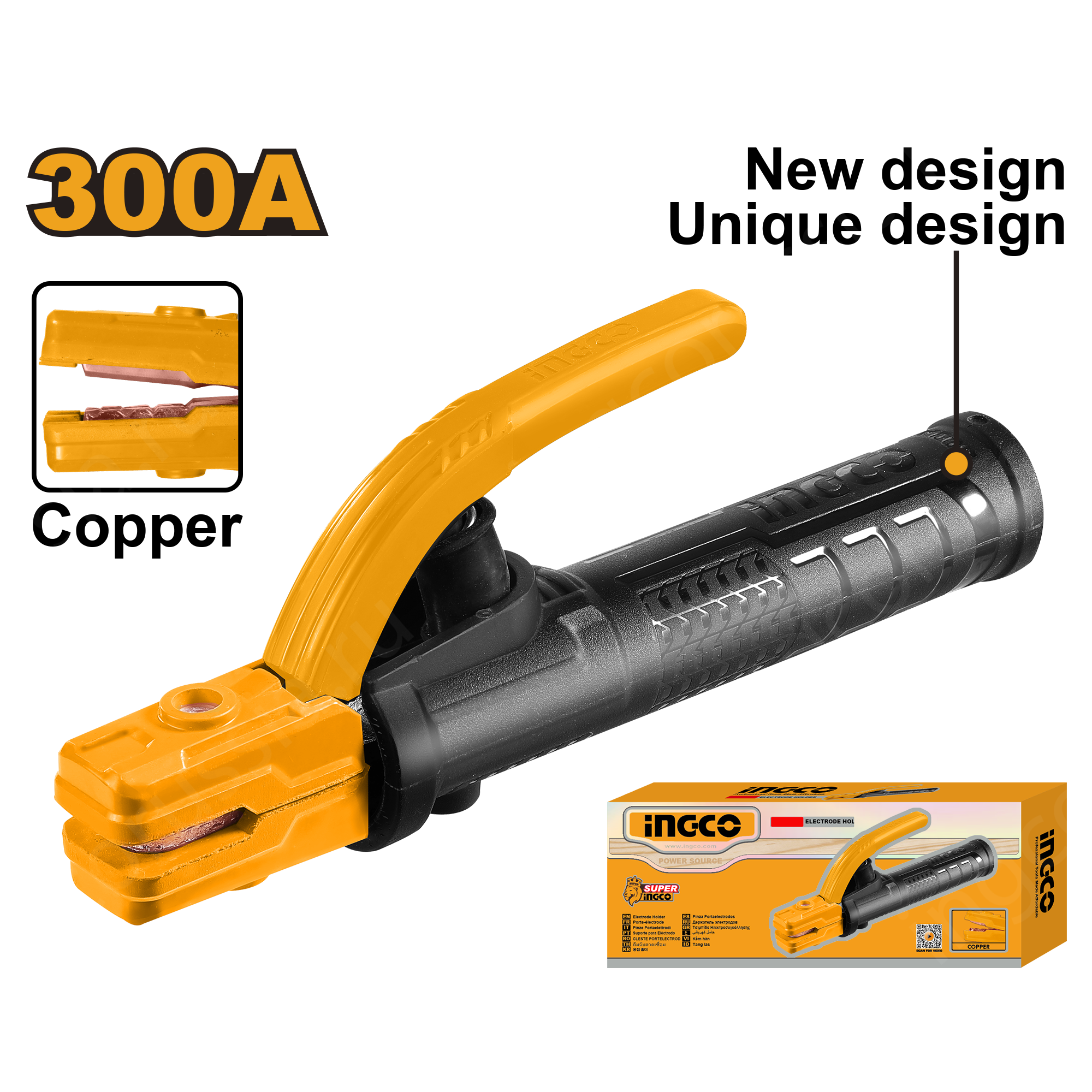 Электрододержатель INGCO WAH3008 служит для надежной фиксации, удержания электрода и подвода к нему сварочного тока во время электродуговой сварки. Медный электрододержатель нидерландского типа. Максимальная сила тока 300А