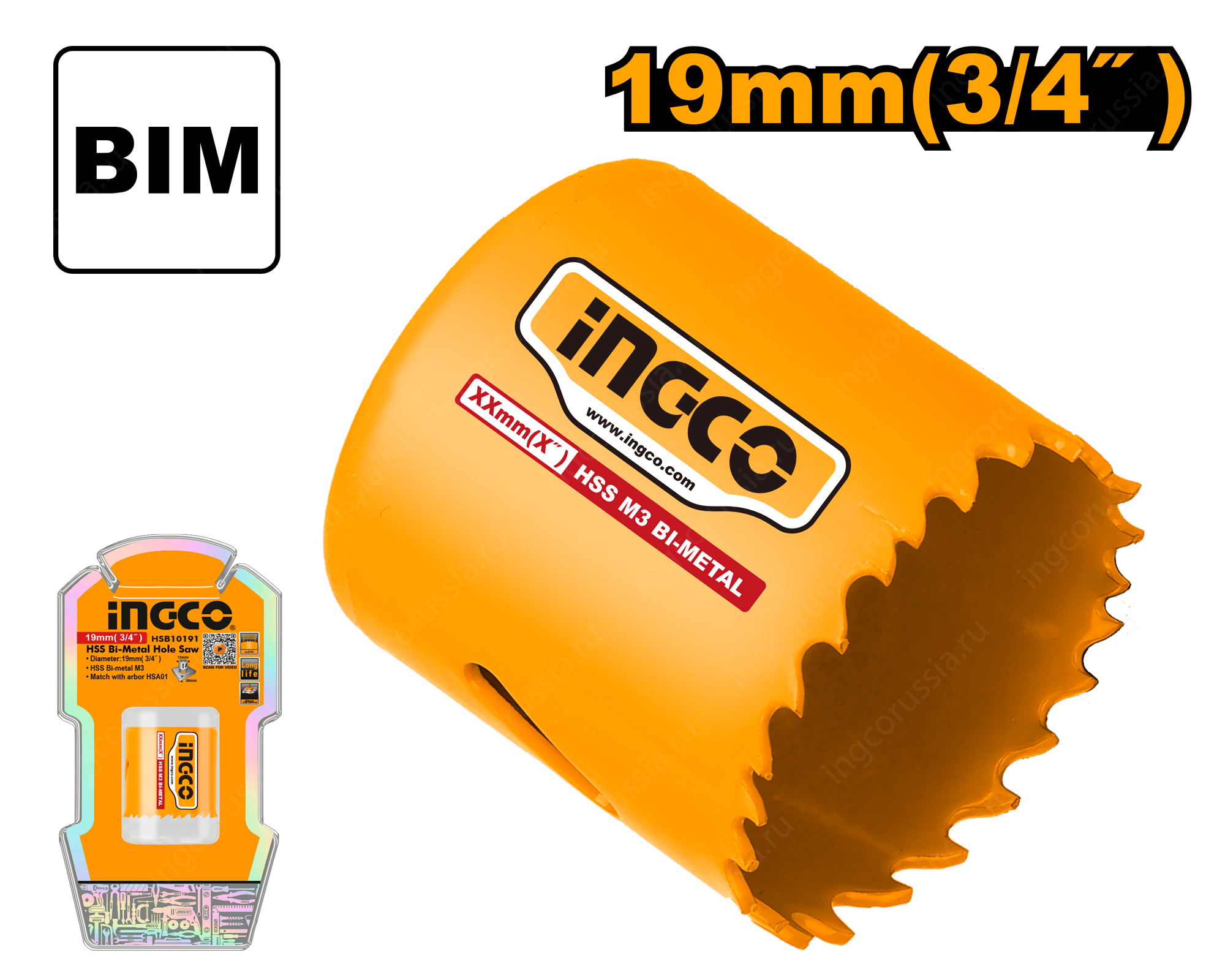 Коронка биметаллическая 19 мм INGCO HSB10191 предназначена для сверления отверстий в дереве, гипсакортоне и цветных металлах ALU, Cu, Ni, Ms, Zn пластике и прочих материалах.