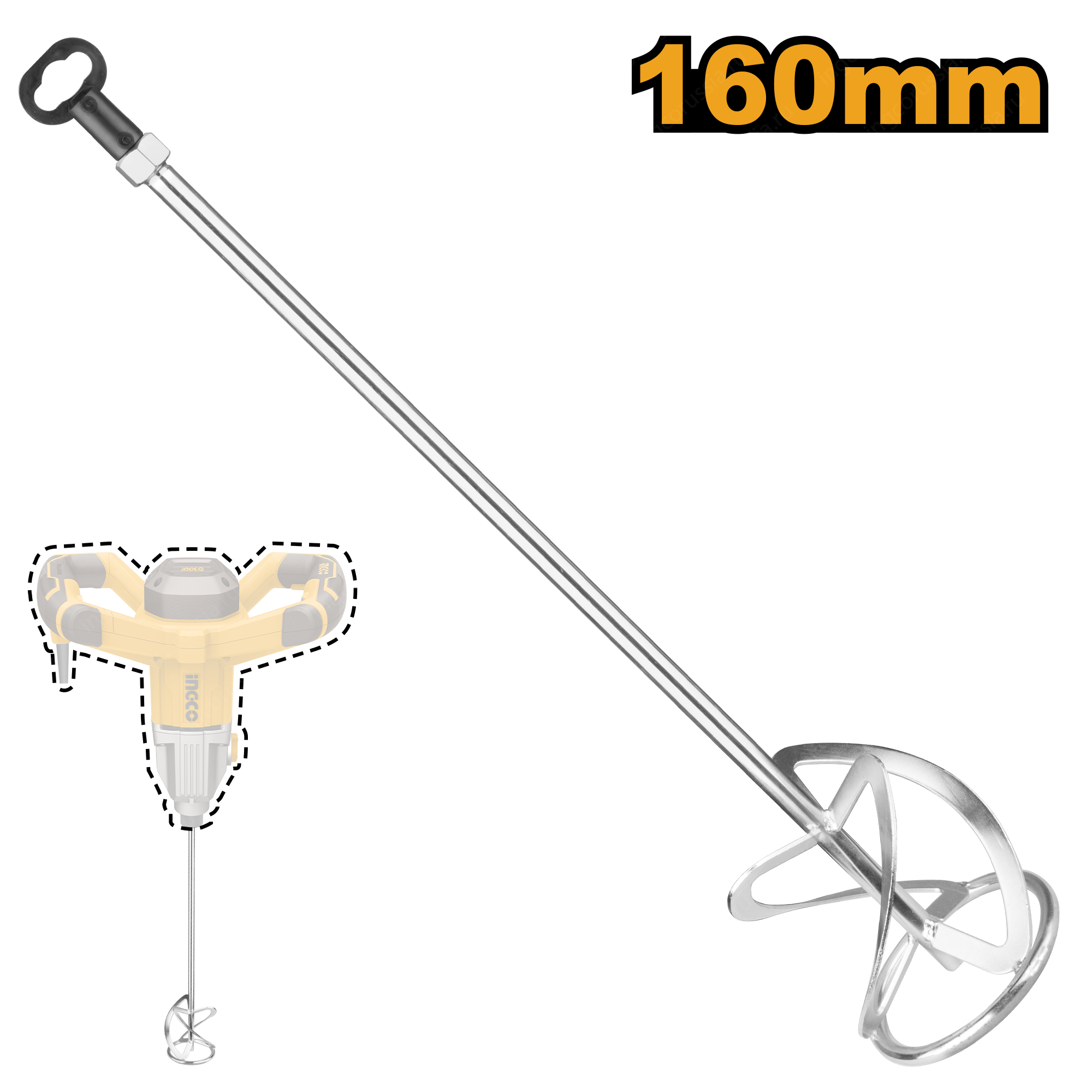 Насадка для перемешивания 160 мм INGCO MP1160 используется совместно со строительными миксерами для размешивания строительных растворов.