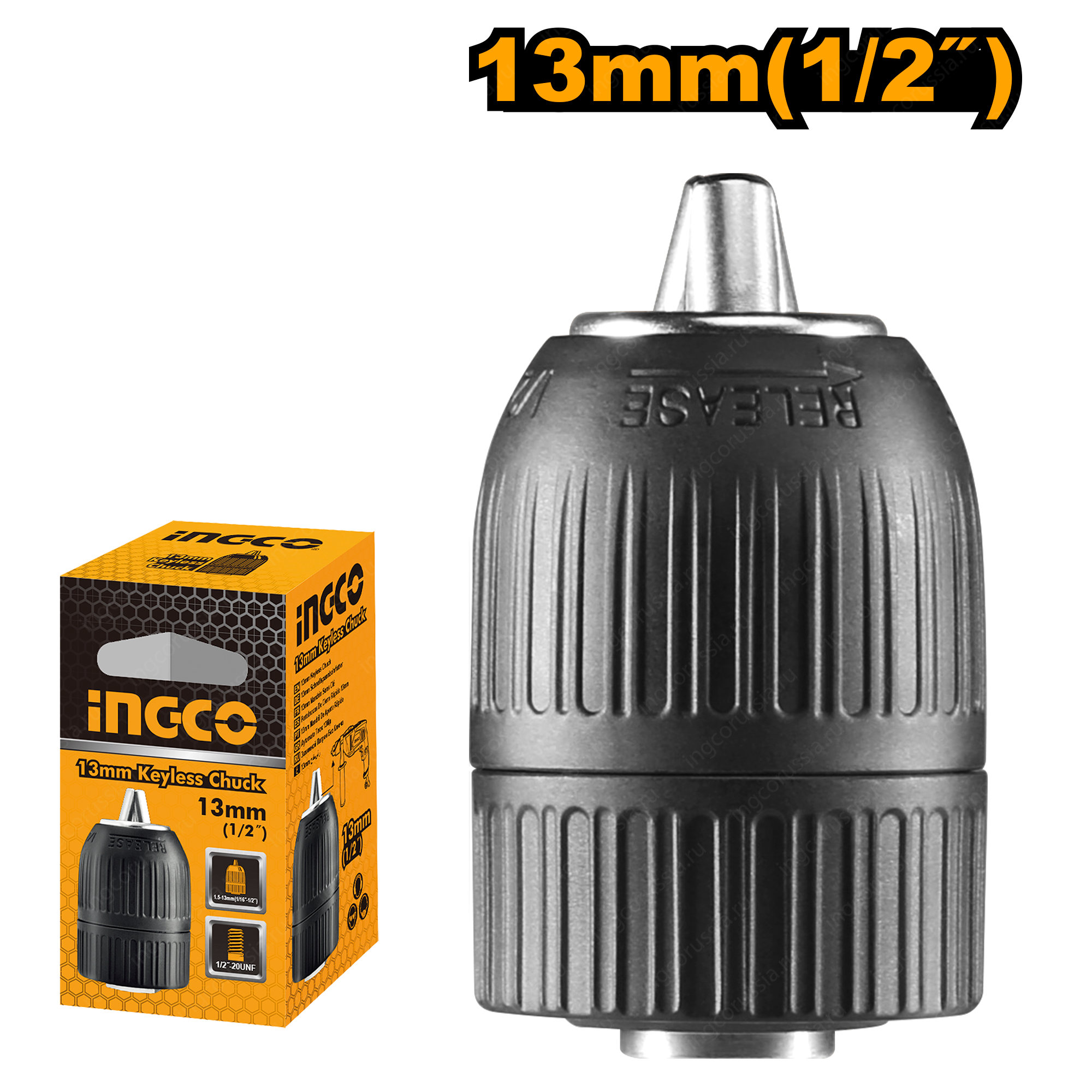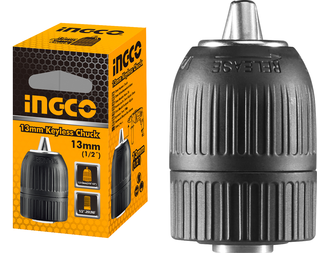 Быстрозажимной патрон 13 мм INGCO KCL1301 используется совместно с дрелями и шуруповертами, имеющими присоединительную резьбу 1/2"-20.