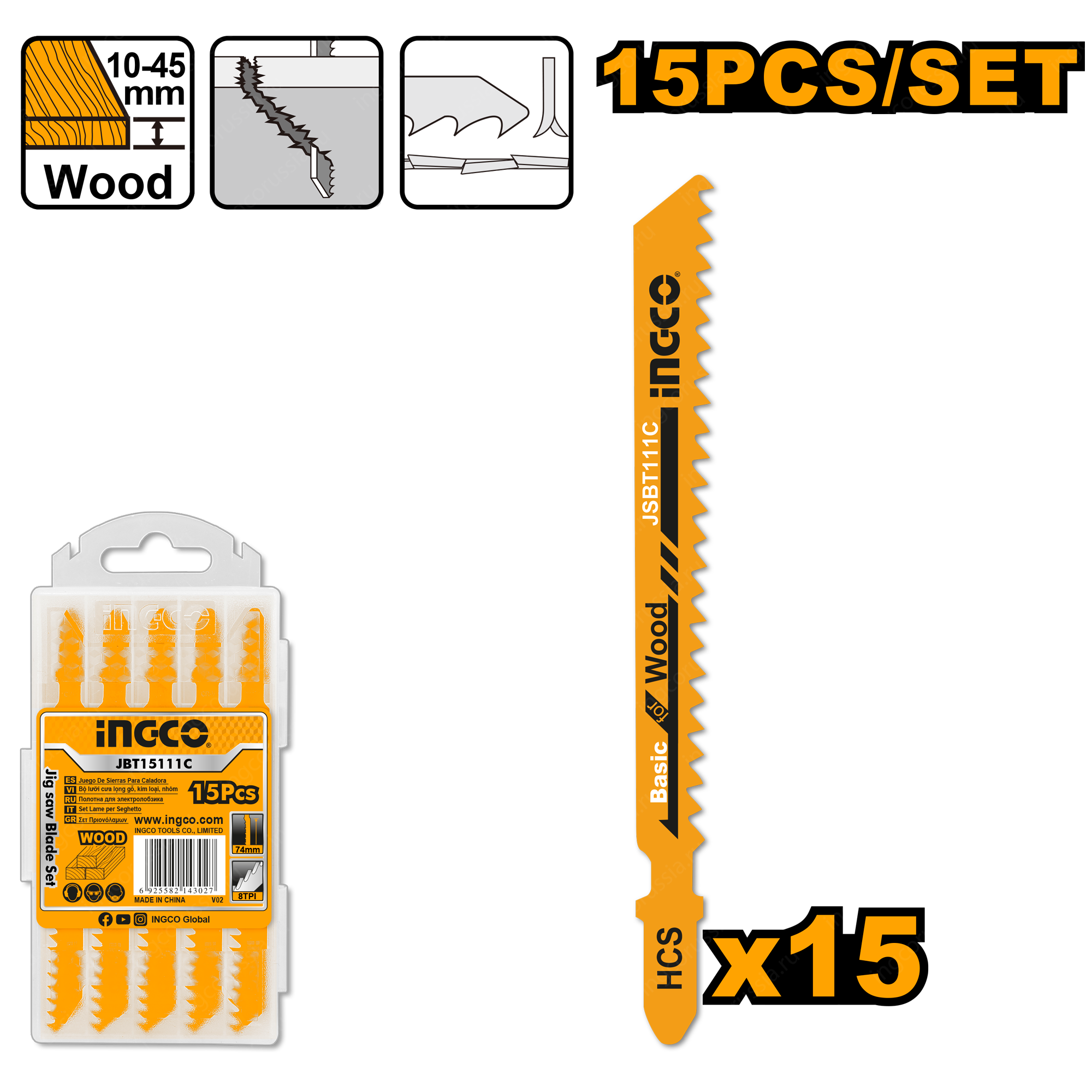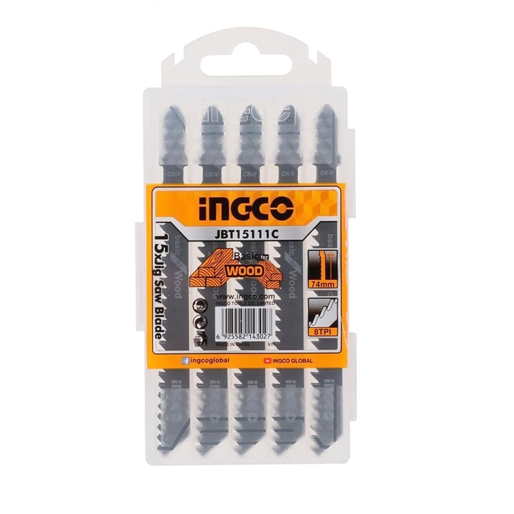 Набор пильных полотен 15 шт INGCO JBT15111C предназначен для резки ДСП, ДВП, древесины, в том числе из хвойных пород, как рабочий элемент электролобзиков. Благодаря материалу полотна - высокоуглеродистой стали (HCS) достигается чистый рез. Длина - 74 мм. Шаг зубьев: 8 TPI. В комплекте 15 лезвий.