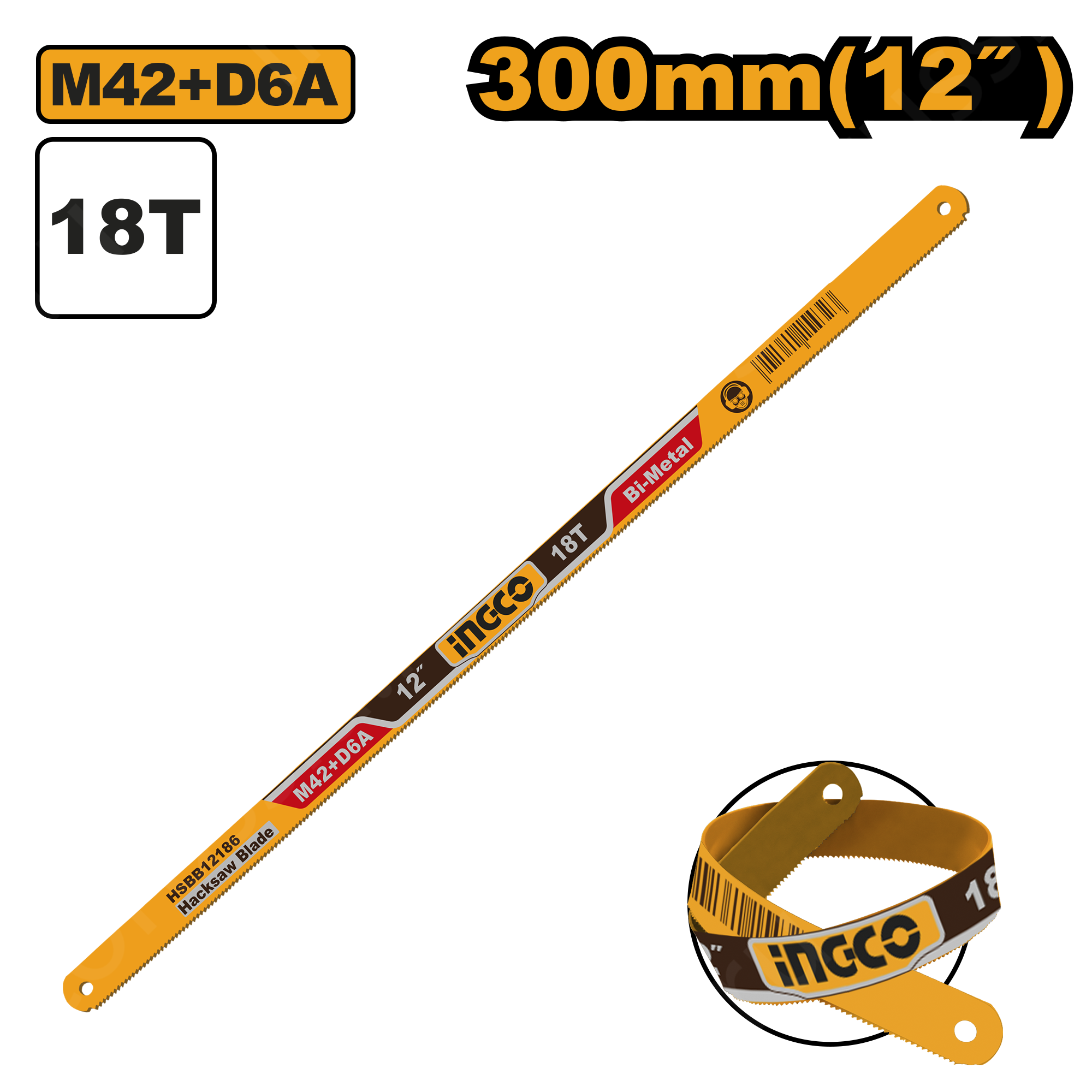 Пильное биметаллическое полотно по металлу Bi-Metall INGCO HSBB12186 INDUSTRIAL предназначено для использования совместно с ножовками по металлу.