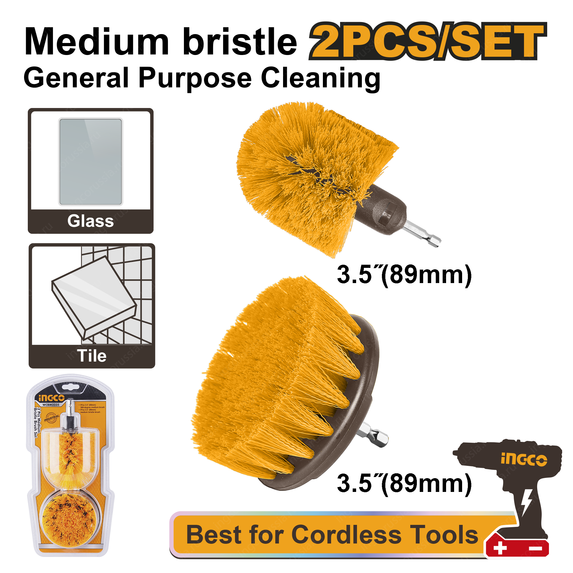 В комплект входят: 1 шт., 3,5-дюймовая средняя щетка с вращением на 360 градусов, 1 шт., 3,5-дюймовая кисть со средней щетиной.
