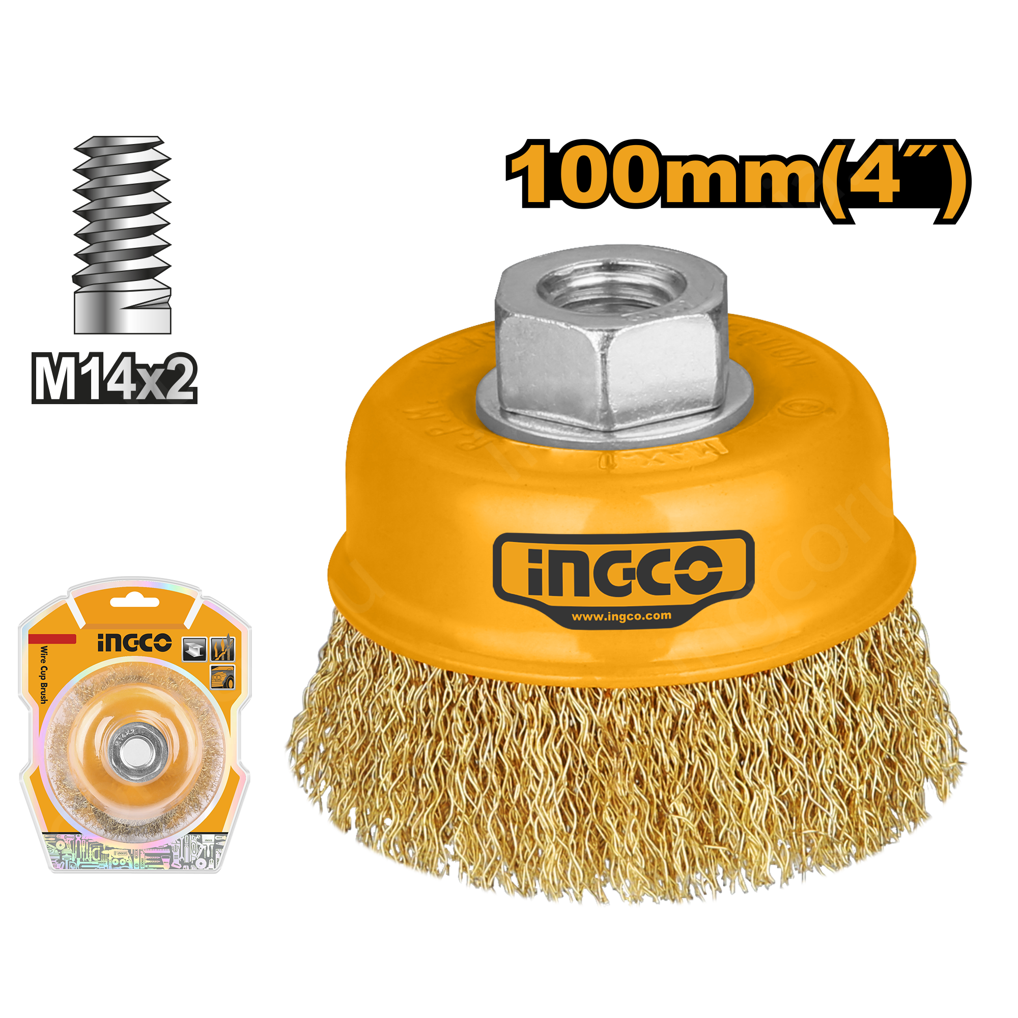 Щетка чашеобразная проволочная INGCO WB11001 применяется совместно с угловыми шлифовальными машинами и предназначена для снятия лака, краски, зачистки от ржавчины металлических поверхностей и изделий. Рабочая часть состоит из витой стальной проволоки толщиной 0,3 мм.