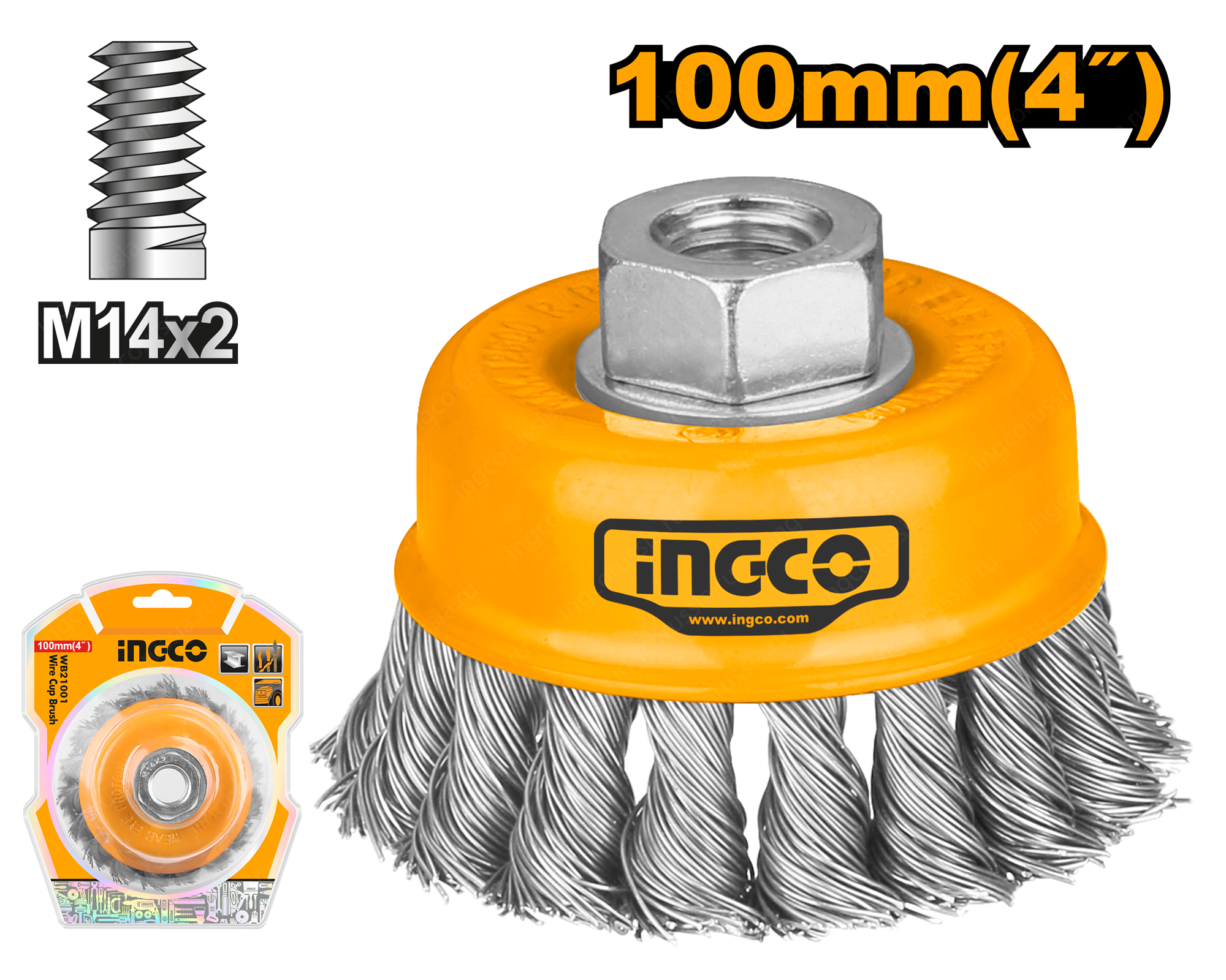 Щетка чашеобразная витая INGCO WB21001 применяется совместно с угловыми шлифовальными машинами и предназначена для снятия лака, краски, зачистки от ржавчины металлических поверхностей и изделий. Рабочая часть состоит из скрученной в пучки стальной проволоки.