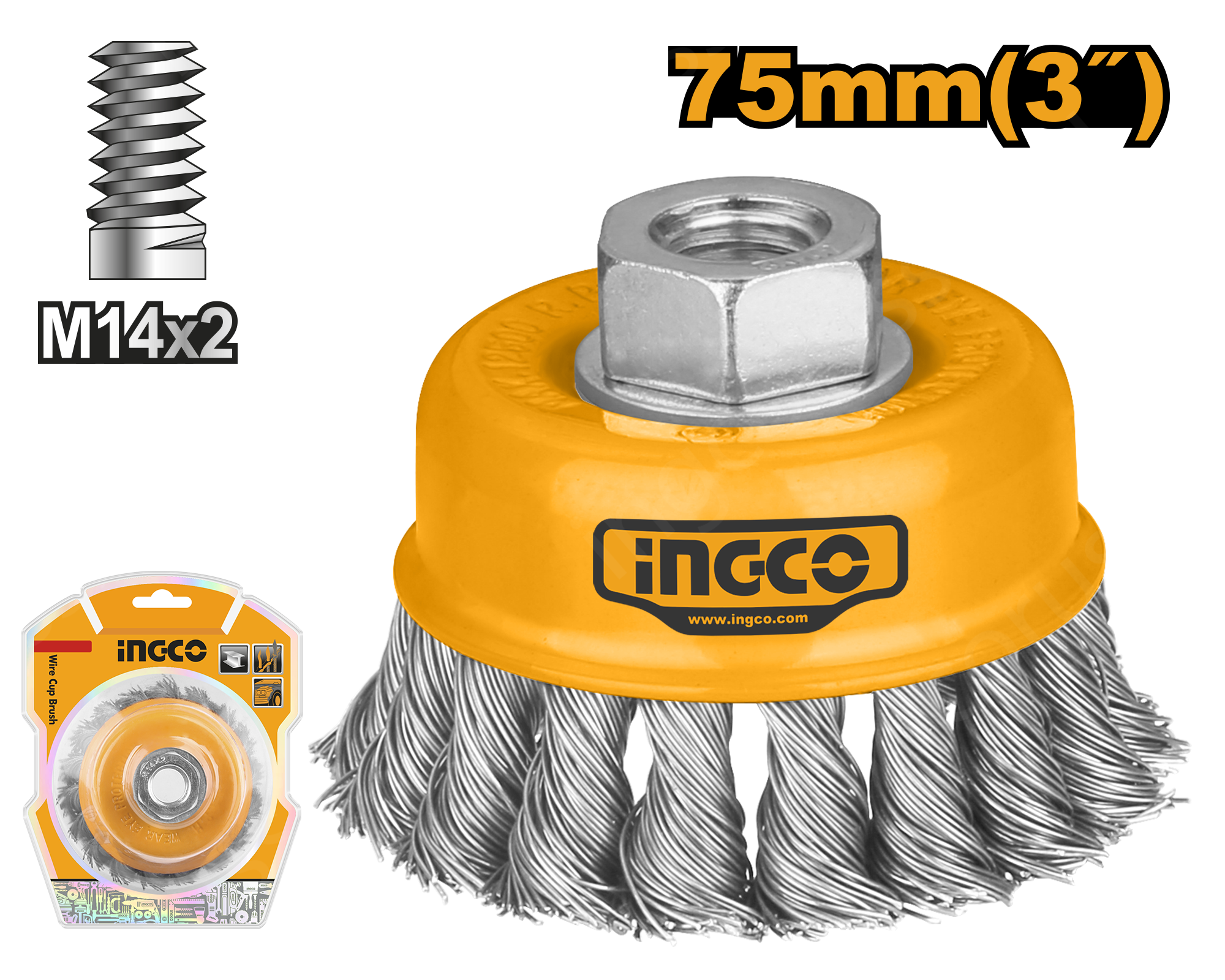 Щетка чашеобразная витая INGCO WB20751 применяется совместно с угловыми шлифовальными машинами и предназначена для снятия лака, краски, зачистки от ржавчины металлических поверхностей и изделий. Рабочая часть состоит из скрученной в пучки стальной проволоки.