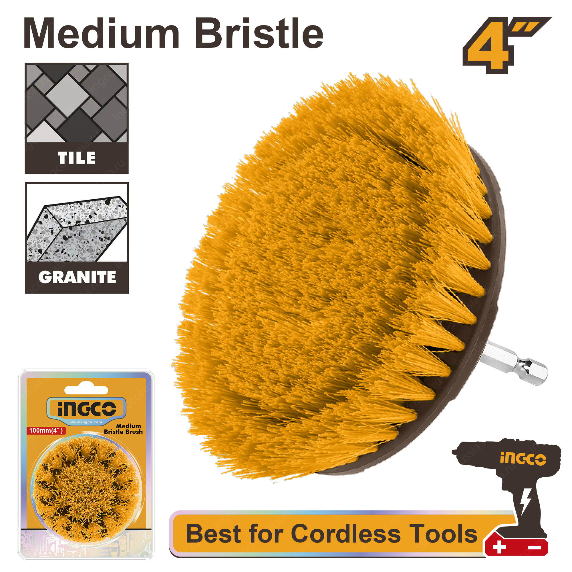 Щетка-сверло "4"" со средней щетиной