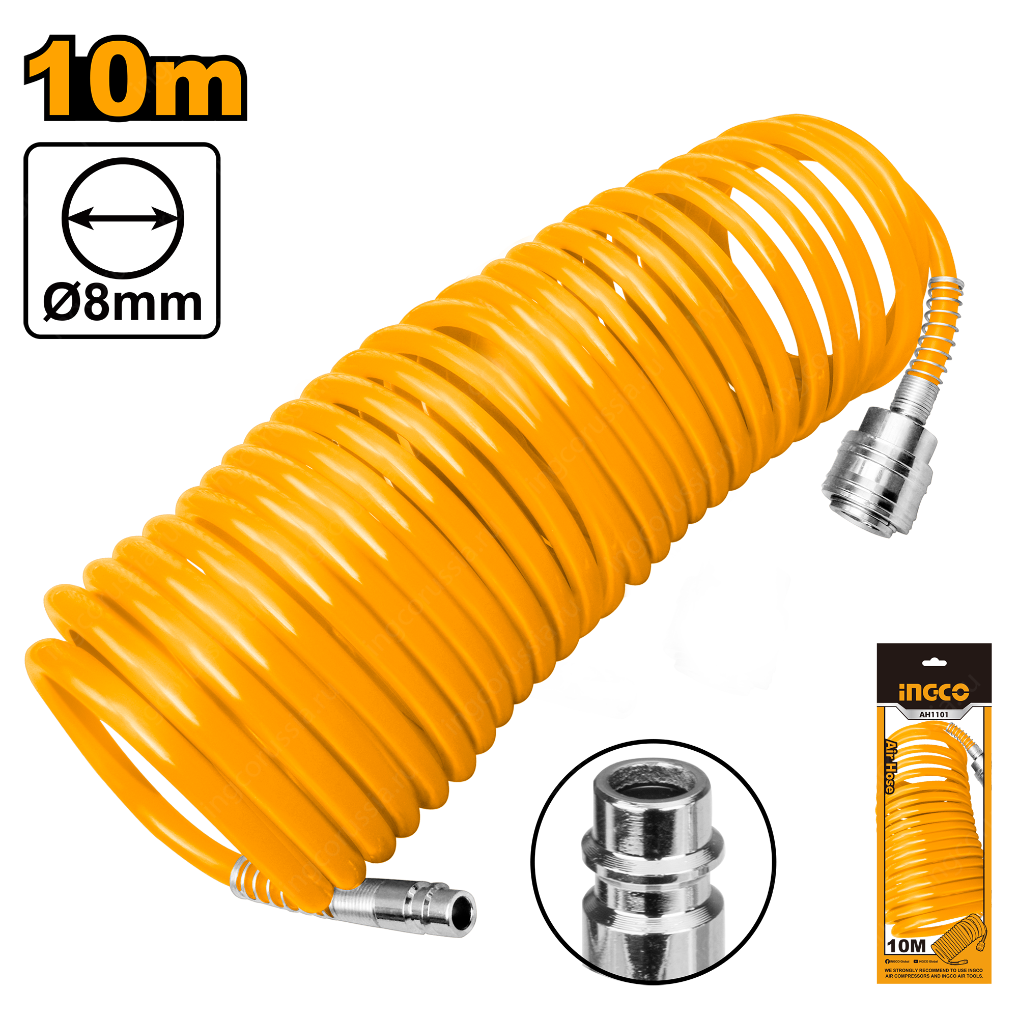 Шланг для компрессора спиральный 10 м. INGCO AH1101 служит удлинителем между компрессором и рабочим инструментом.