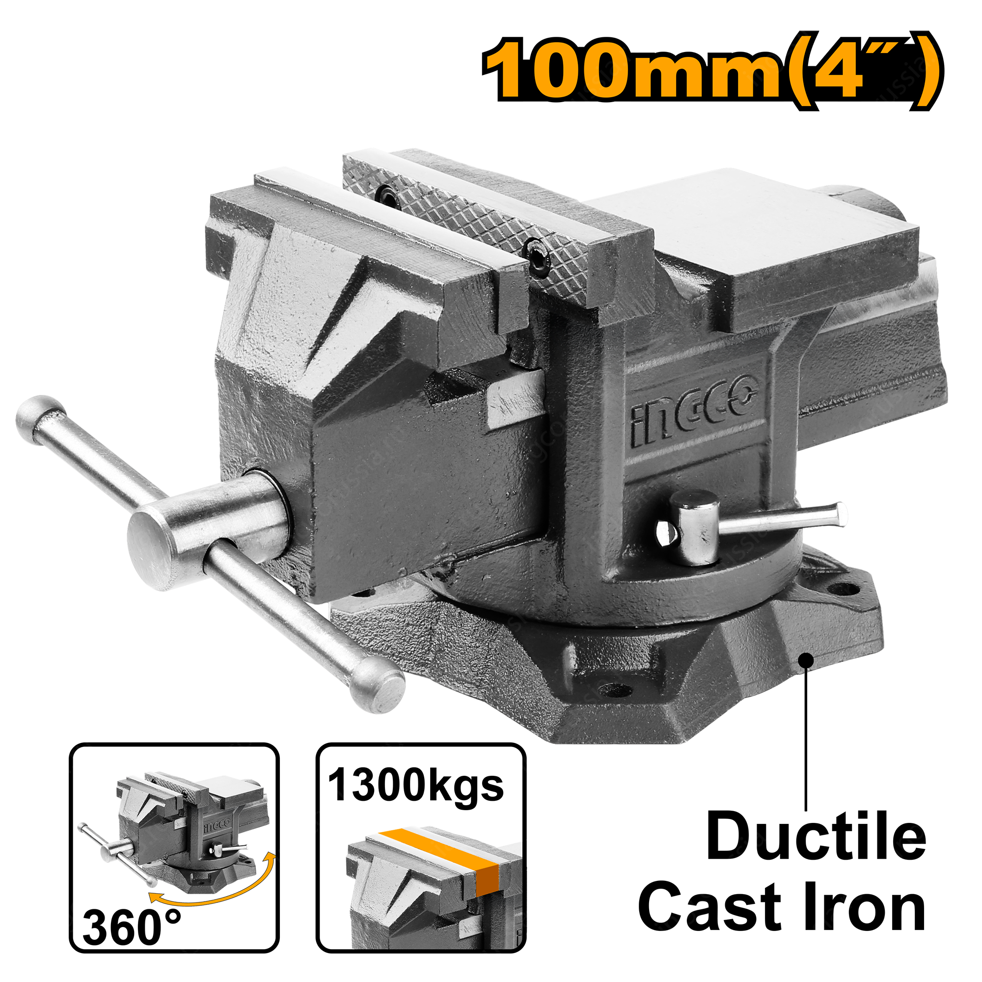 Тиски поворотные с наковальней 100 мм. INGCO HBV084 применяются для надежной фиксации заготовки.