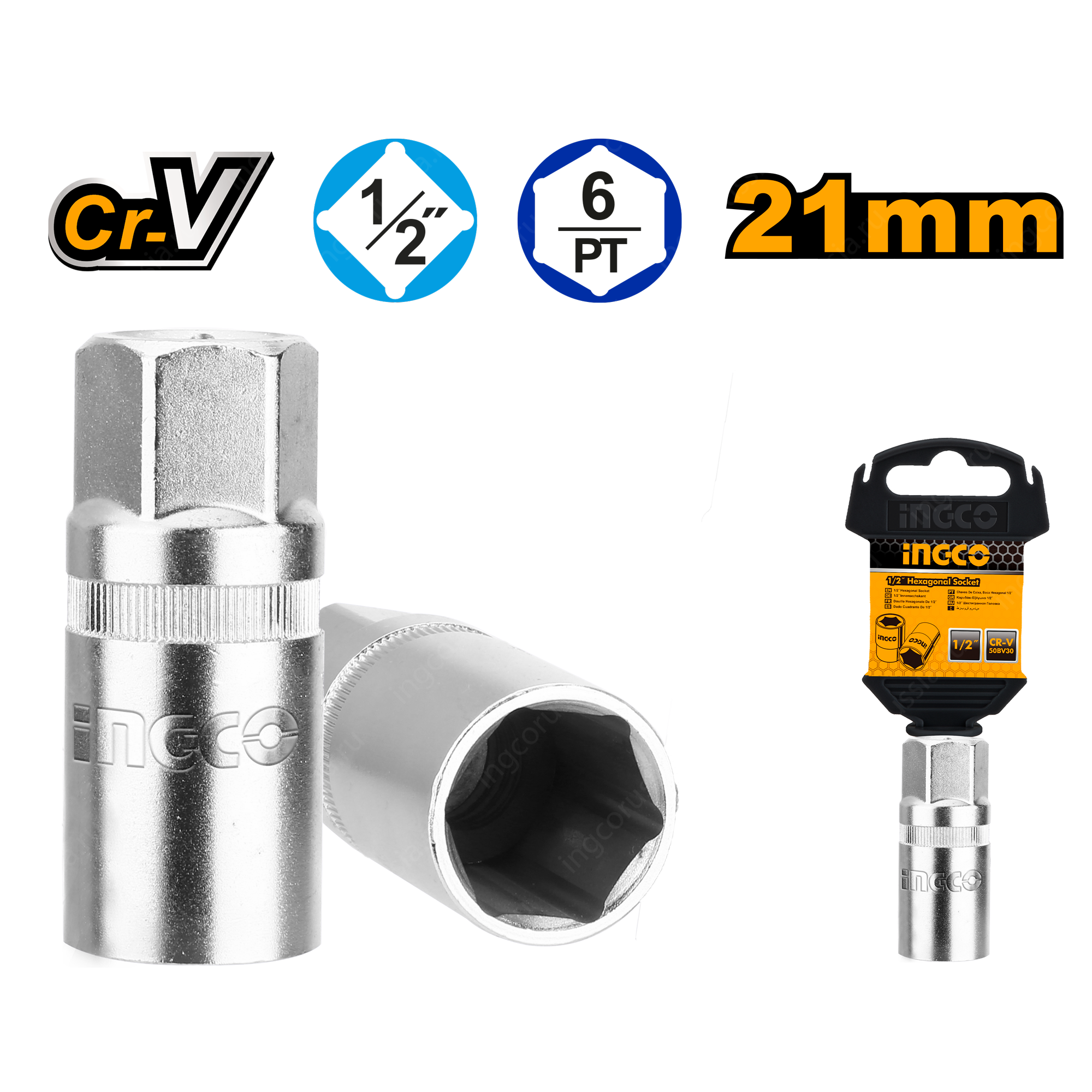 Головка для свечей зажигания 6 гр, 21 мм, 1/2", INGCO HSPS12211 INDUSTRIAL используется для снятия или установки свечей зажигания бензиновых двигателей внутреннего сгорания.