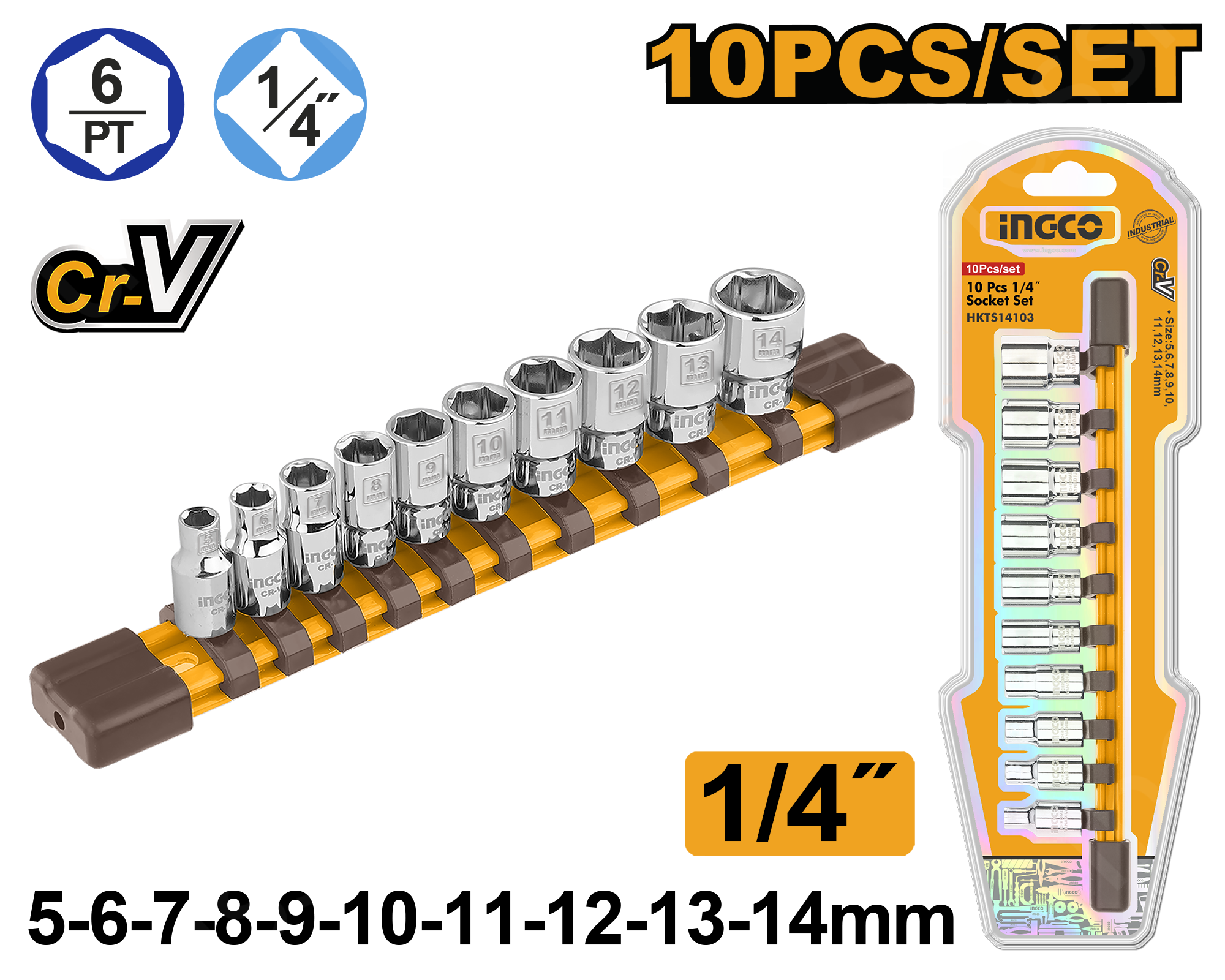 Набор головок 1/4" 10 шт. INGCO HKTS14103 INDUSTRIAL используется при проведении ремонтных работ для монтажа или демонтажа резьбовых соединений.