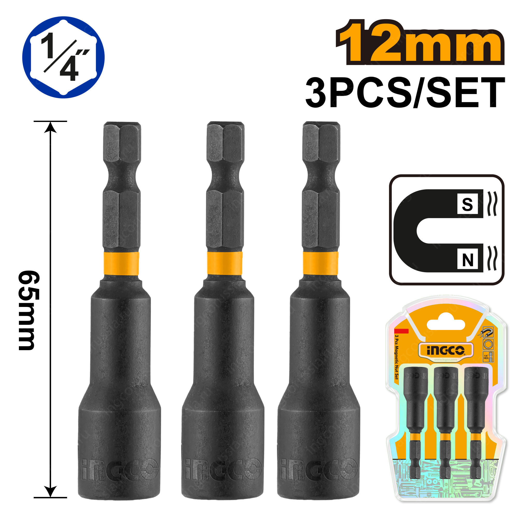 Бита 1/4 " с торцевой головкой магнитная 12х65 мм. 3 шт. INGCO AMN1231 используется совместно с гайковертами для монтажа или демонтажа резьбовых соединений.