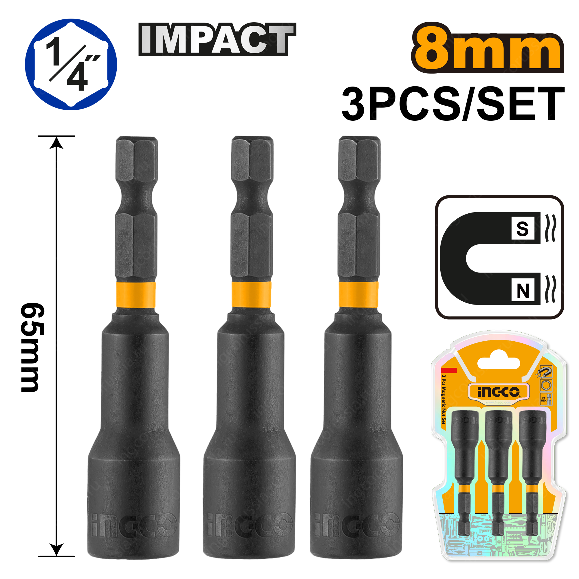 Бита 1/4 " с торцевой головкой магнитная 8х65 мм. 3 шт. INGCO AMN0831 используется совместно с гайковертами для монтажа или демонтажа резьбовых соединений.