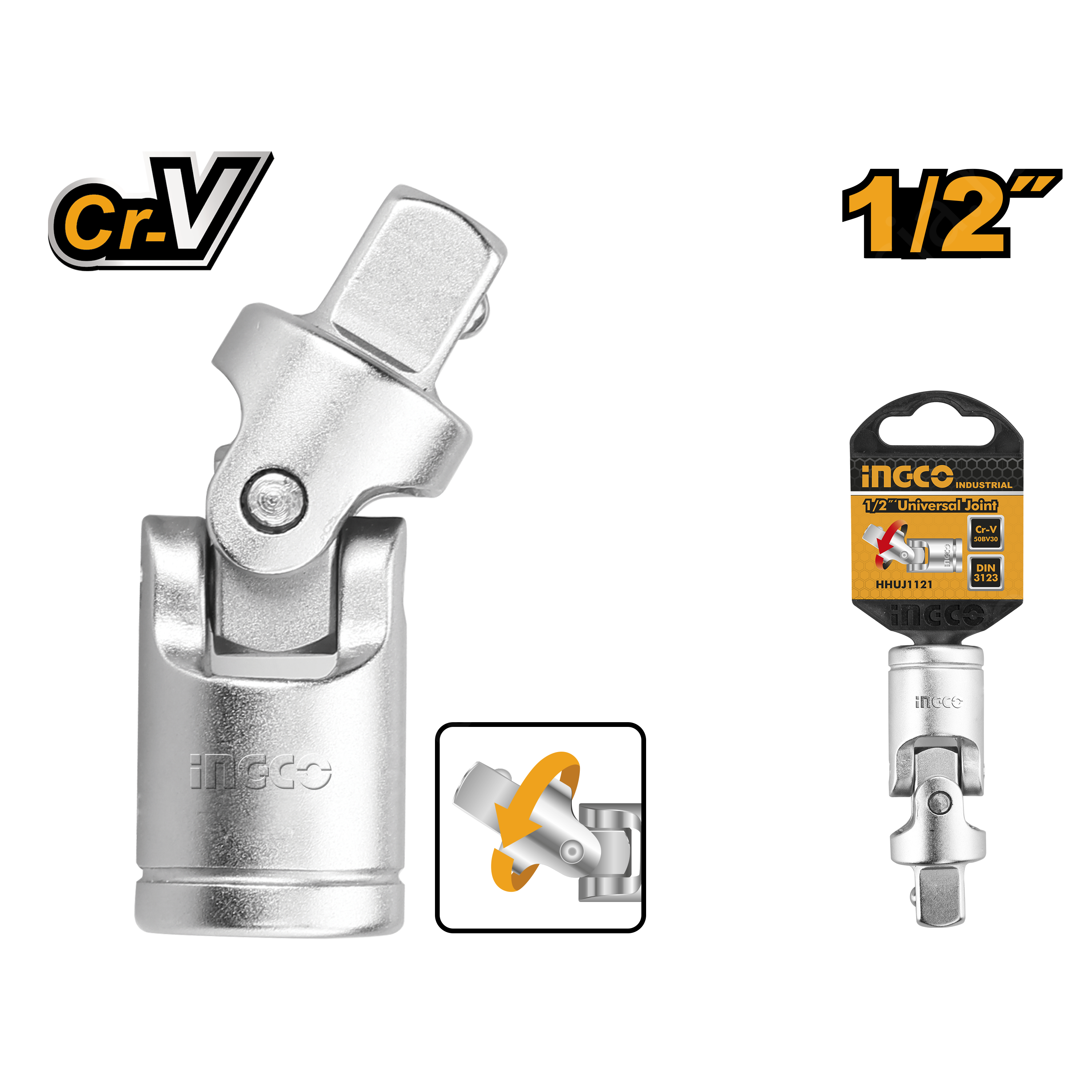 Карданный шарнир INGCO HHUJ1121 INDUSTRIAL используется для передачи вращающего усилия на торцевые головки.