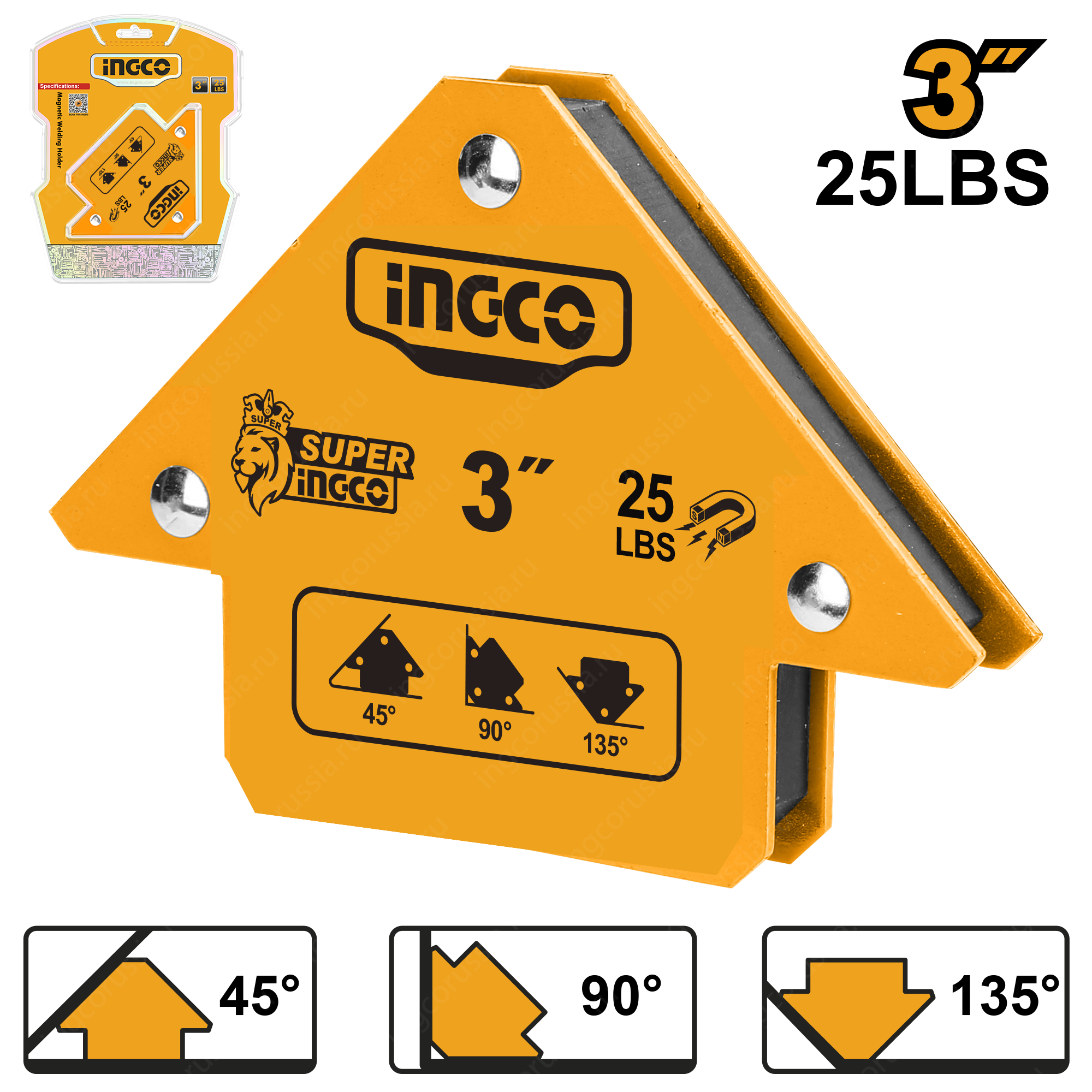 Угольник магнитный для сварки INGCO AMWH25031 удобное приспособление фиксации металлических деталей при сварке, пайке или сборке конструкций.
