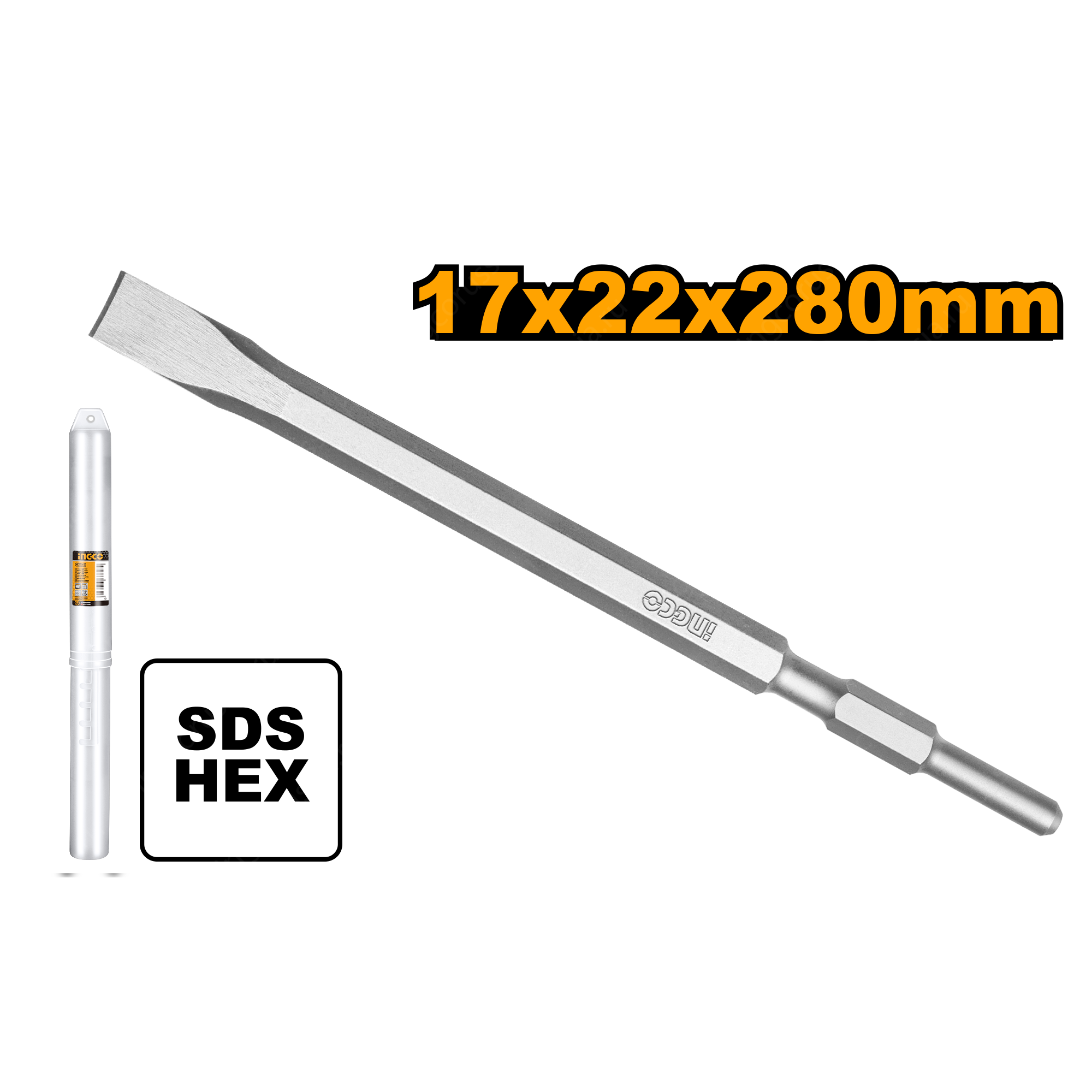 Зубило пикообразное Hex 17x280х22 мм INGCO DBC0522801