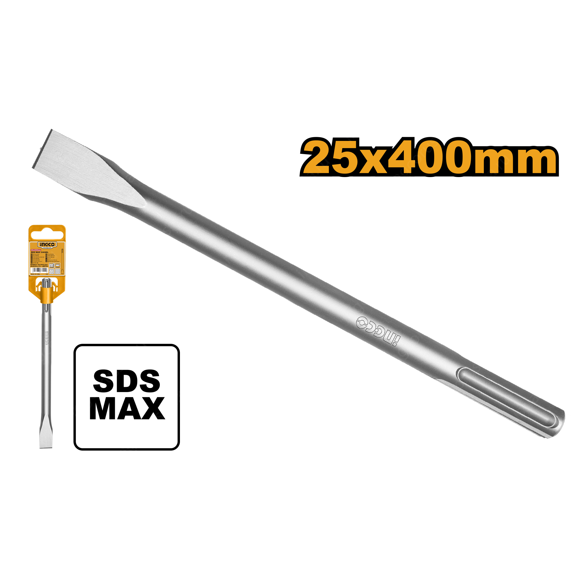 Зубило плоское INGCO DBC0224001 INDUSTRIAL применяется совмесно с перфораторами, имеющими тип крепления SDS Max. Используется при долбежных и демонтажных работах по кирпичной кладке, бетону, природному и искусственному камню. Длина 400 мм, диаметр хвостовика - 18 мм. Ширина рабочей части - 25 мм.