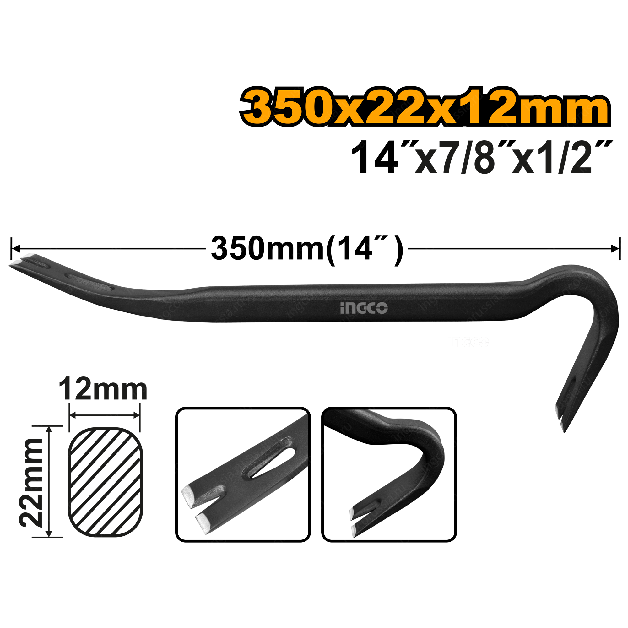 Лом-гвоздодер 350 мм INGCO HWBA01142 INDUSTRIAL используется при строительных и монтажных работах.