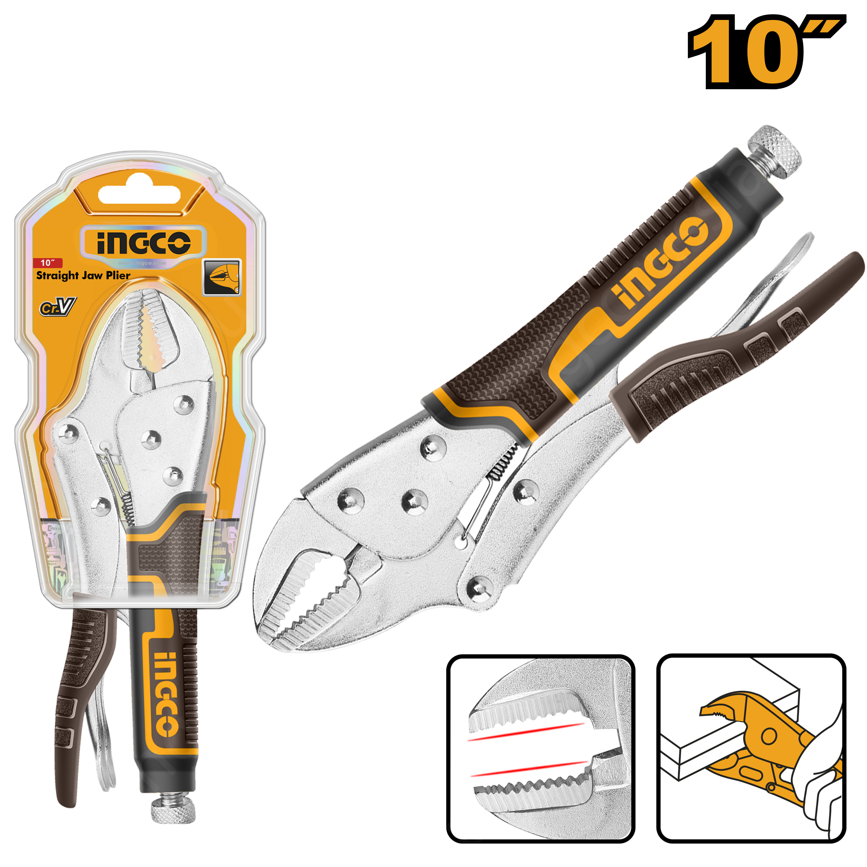 Клещи зажимные 250 мм INGCO HSJP0110 используется для захвата и фиксирования деталей имеющих плоскую форму.
