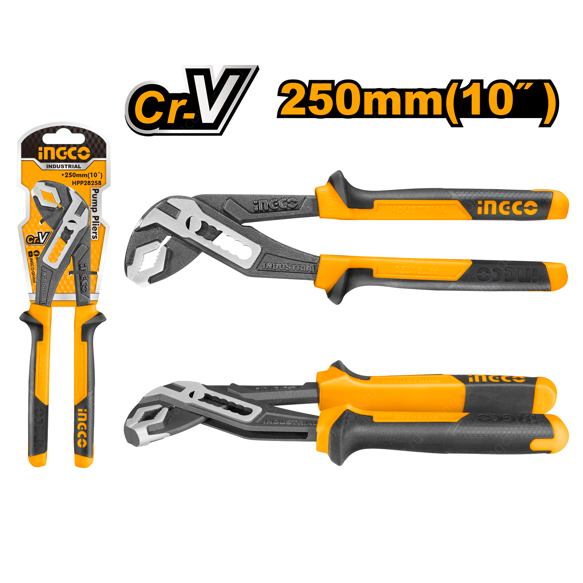 Клещи переставные 250 мм INGCO HPP28258 INDUSTRIAL используются для различных работ с деталями круглого и шестигранного профиля.