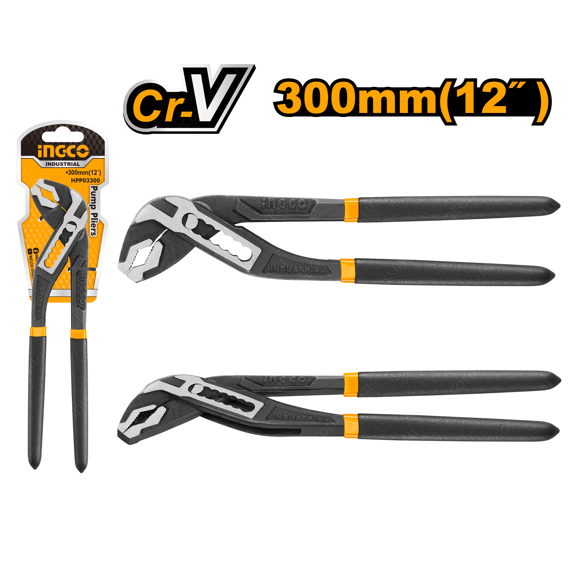 Универсальные переставные клещи 300 мм INGCO HPP03300 INDUSTRIAL используются для различных работ с деталями круглого и шестигранного профиля.