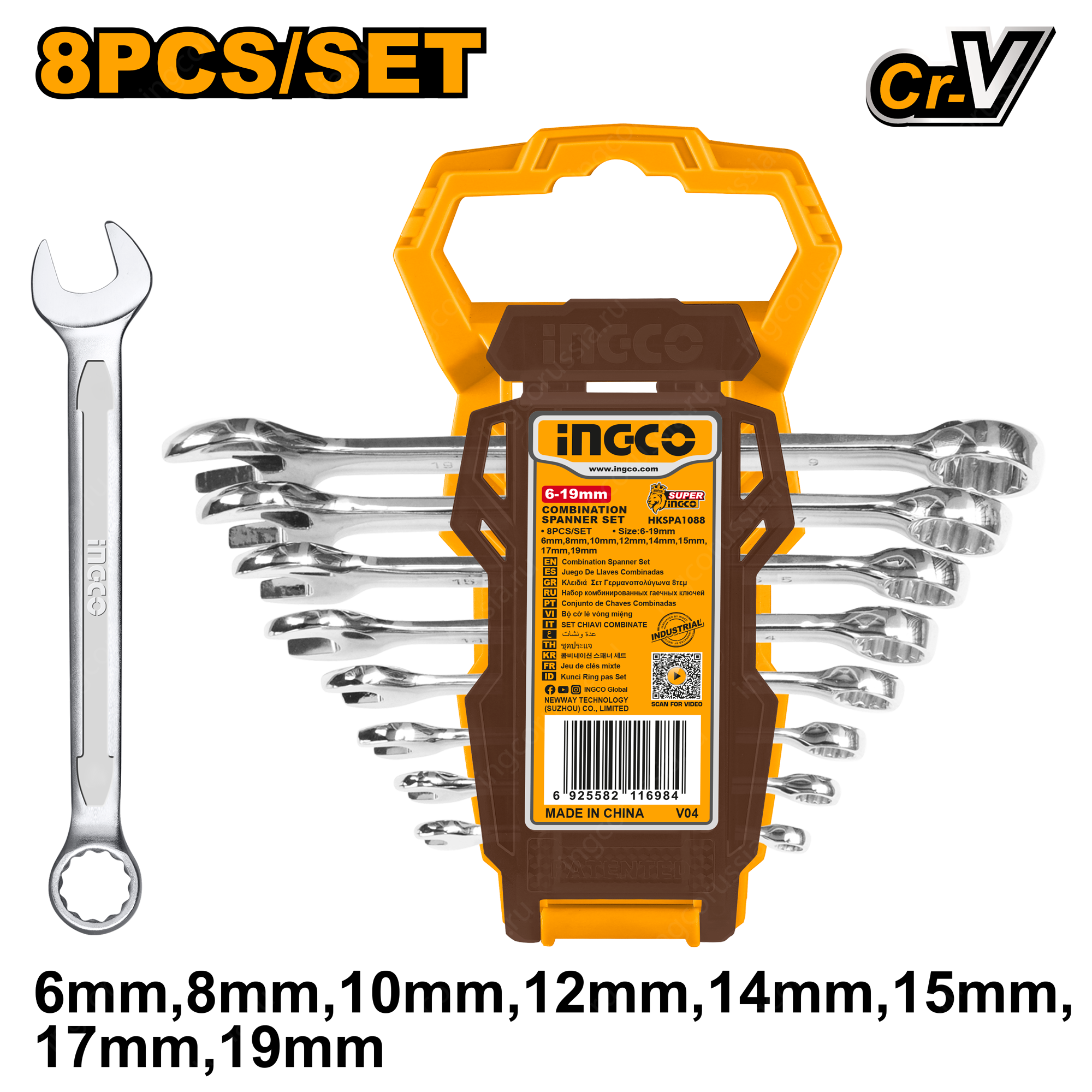 Набор комбинированных гаечных ключей INGCO HKSPA1088 предназначен для проведения ремонтных, сборочных и демонтажных работ с использованием шестигранного крепежа.