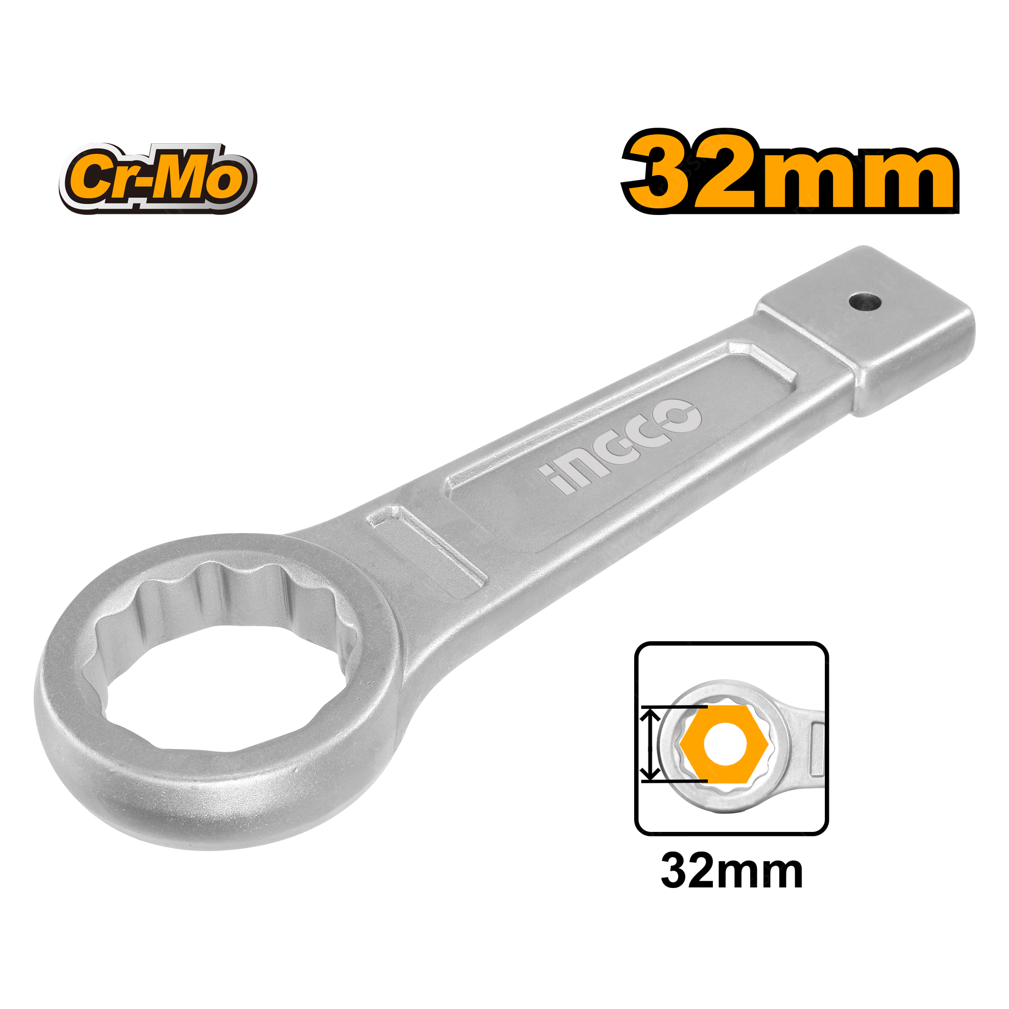 Накидной ударный ключ 32 мм INGCO HRSW032 INDUSTRIAL - предназначен для работы с тугим крепежом.