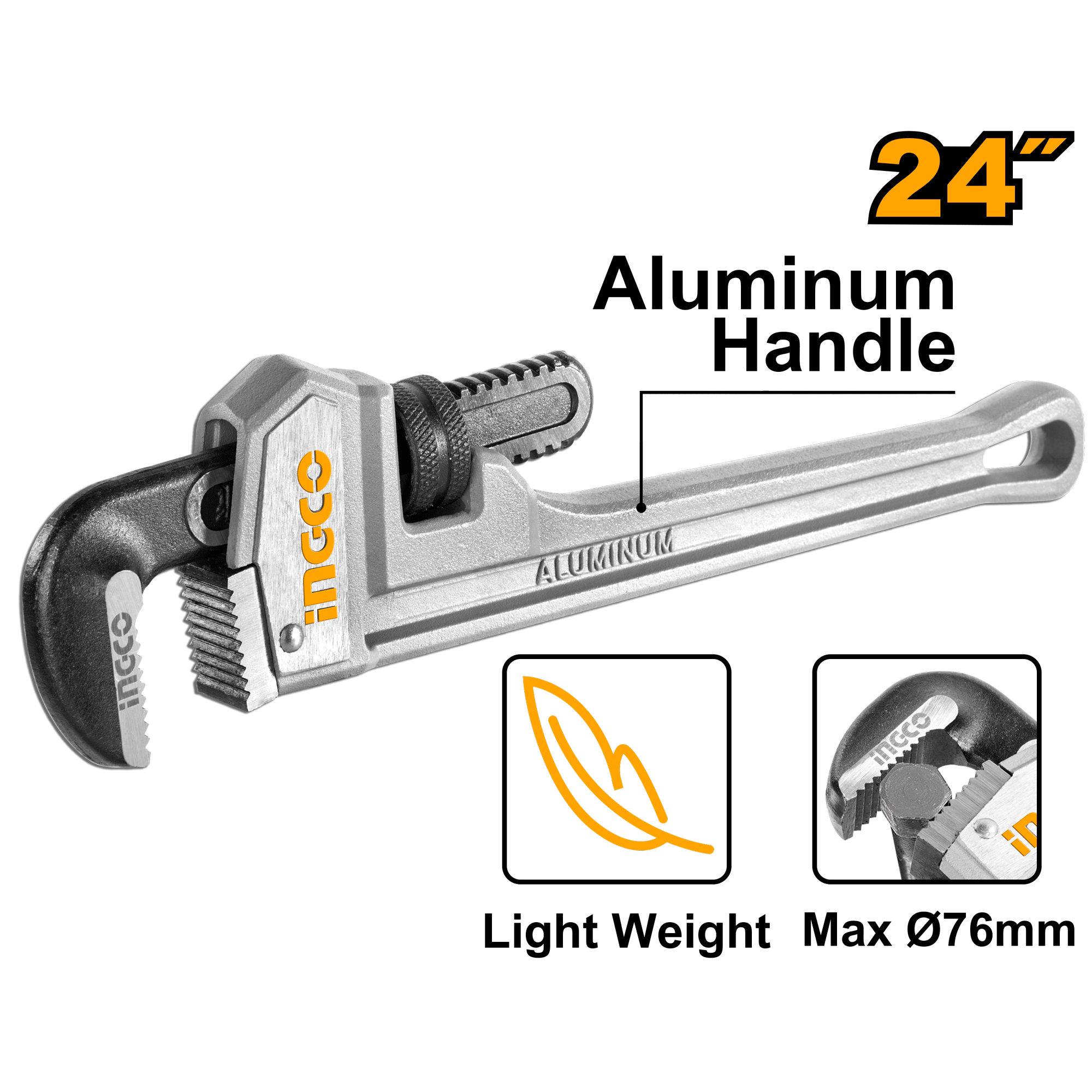 Ключ трубный 600х76мм INGCO HALPW0124 INDUSTRIAL представляет собой инструмент с раздвижными губками, которые обладают насечками для увеличения площади контакта с поверхностью детали.