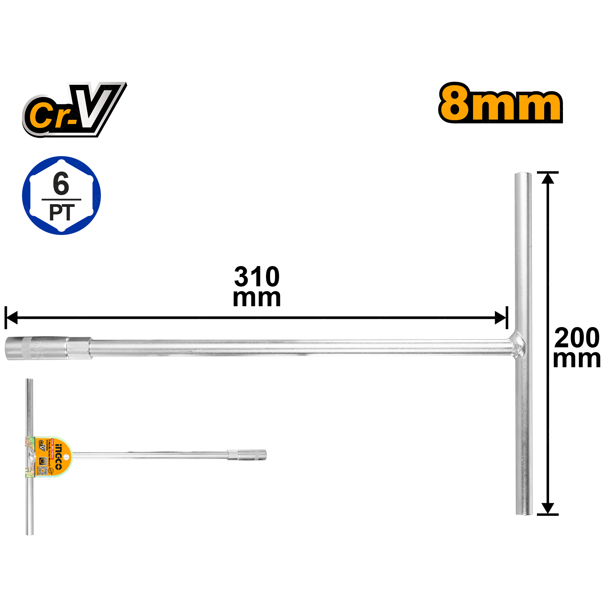 Ключ торцевой 8 мм. INGCO HTSW0808 INDUSTRIAL с Т-образной рукояткой - применяется для работы с крепежом. Инструмент выполнен из высокопрочной хромованадиевой стали.