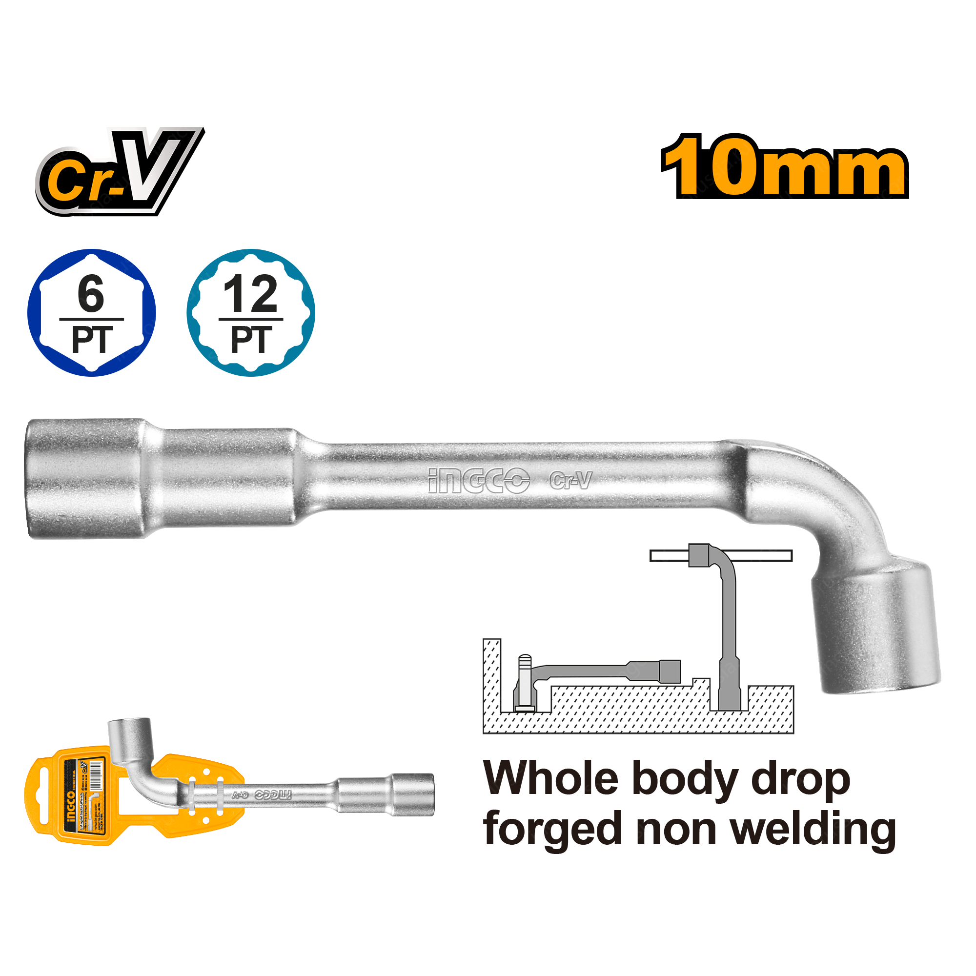 Торцевой L-образный ключ с отверстием 10 мм INGCO HWL1008 INDUSTRIAL применяется для работ со шпильками и другими длинными резьбовыми элементами.