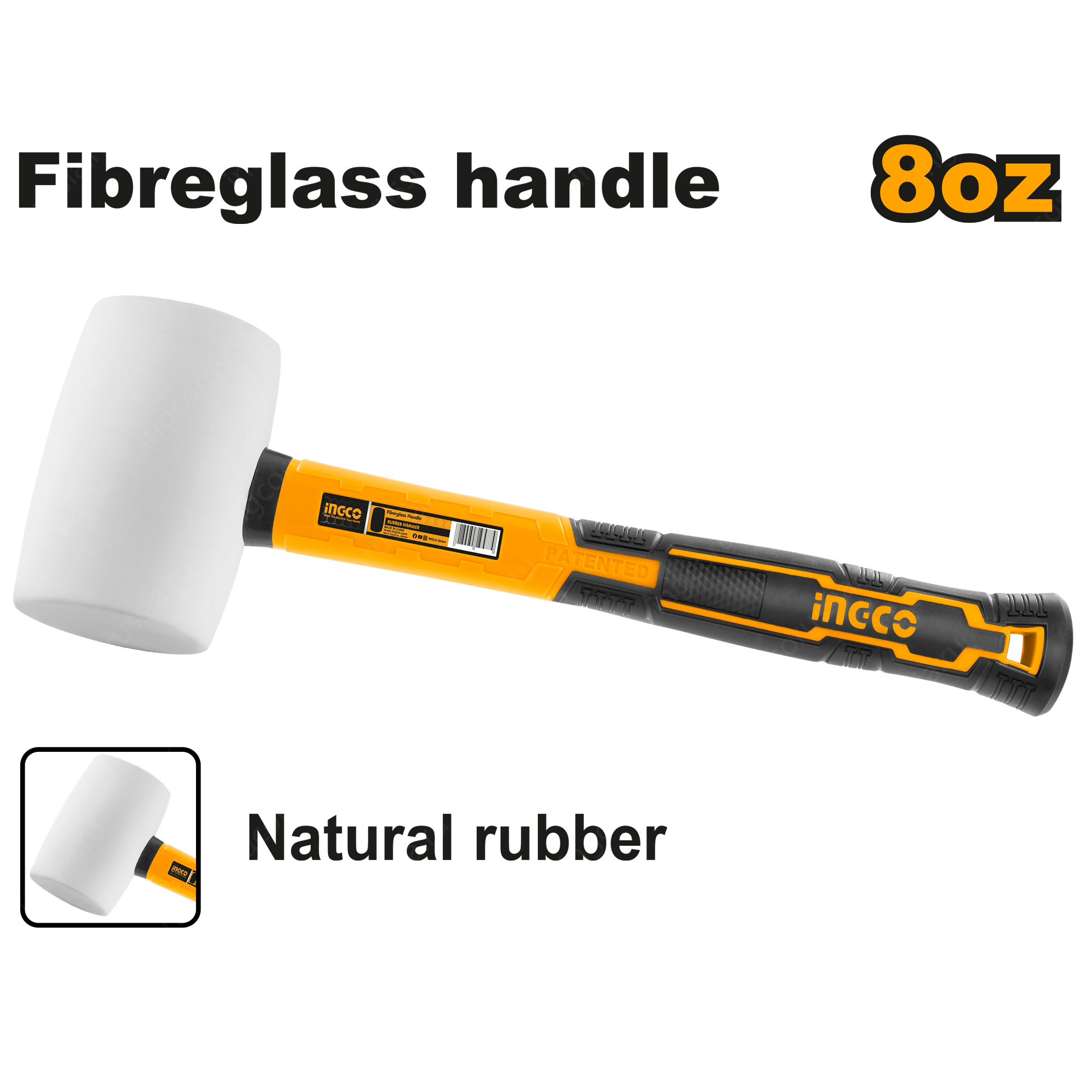Киянка резиновая 220 гр. INGCO HRUH8308 незаменимый инструмент для чистовых работ с хрупкими материалами.