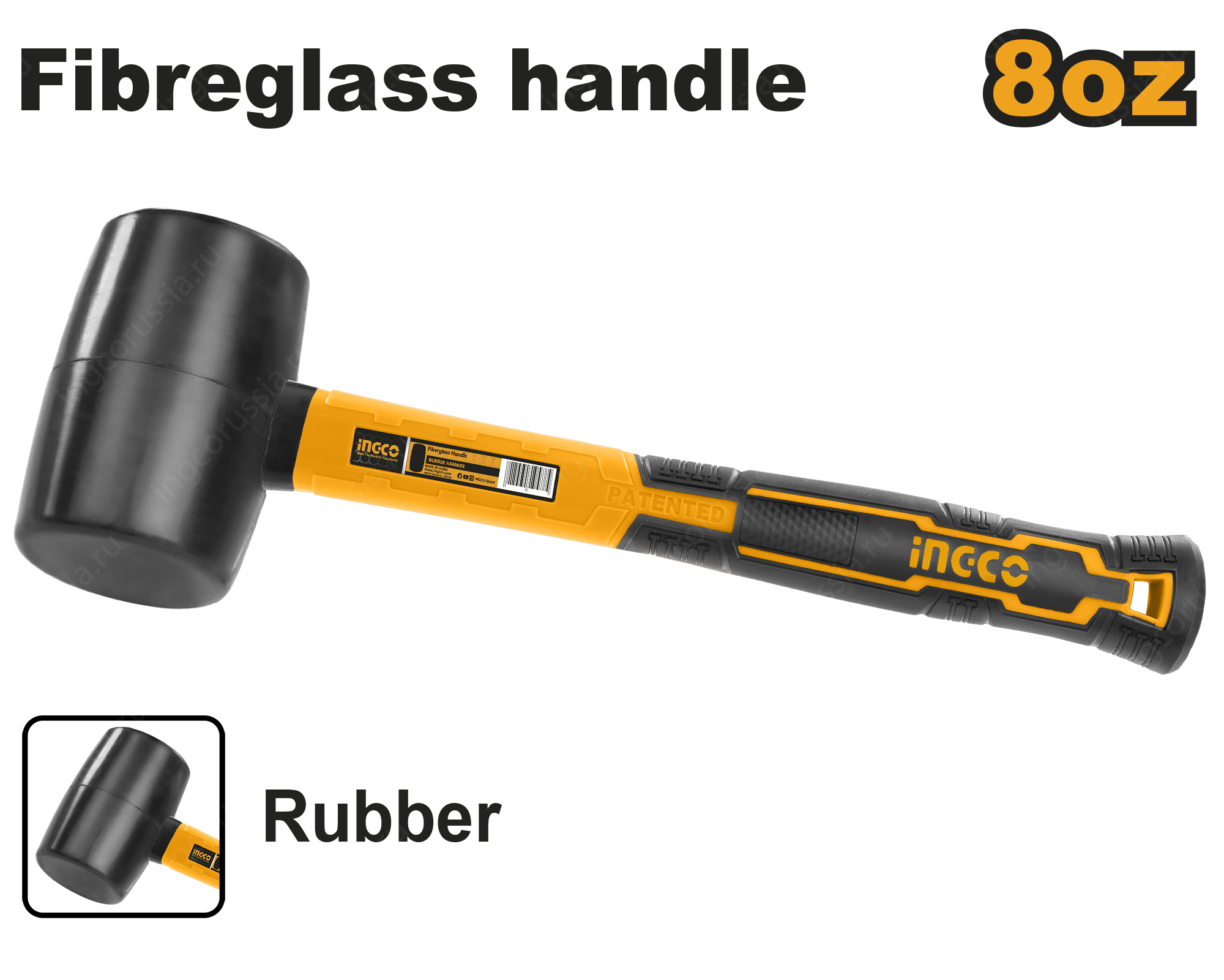 Киянка резиновая 220 гр. INGCO HRUH8208 удобный и надежный инструмент, при помощи которого можно эффективно работать на строительной площадке, выполнять силовые операции при укладке кирпича или блоков.