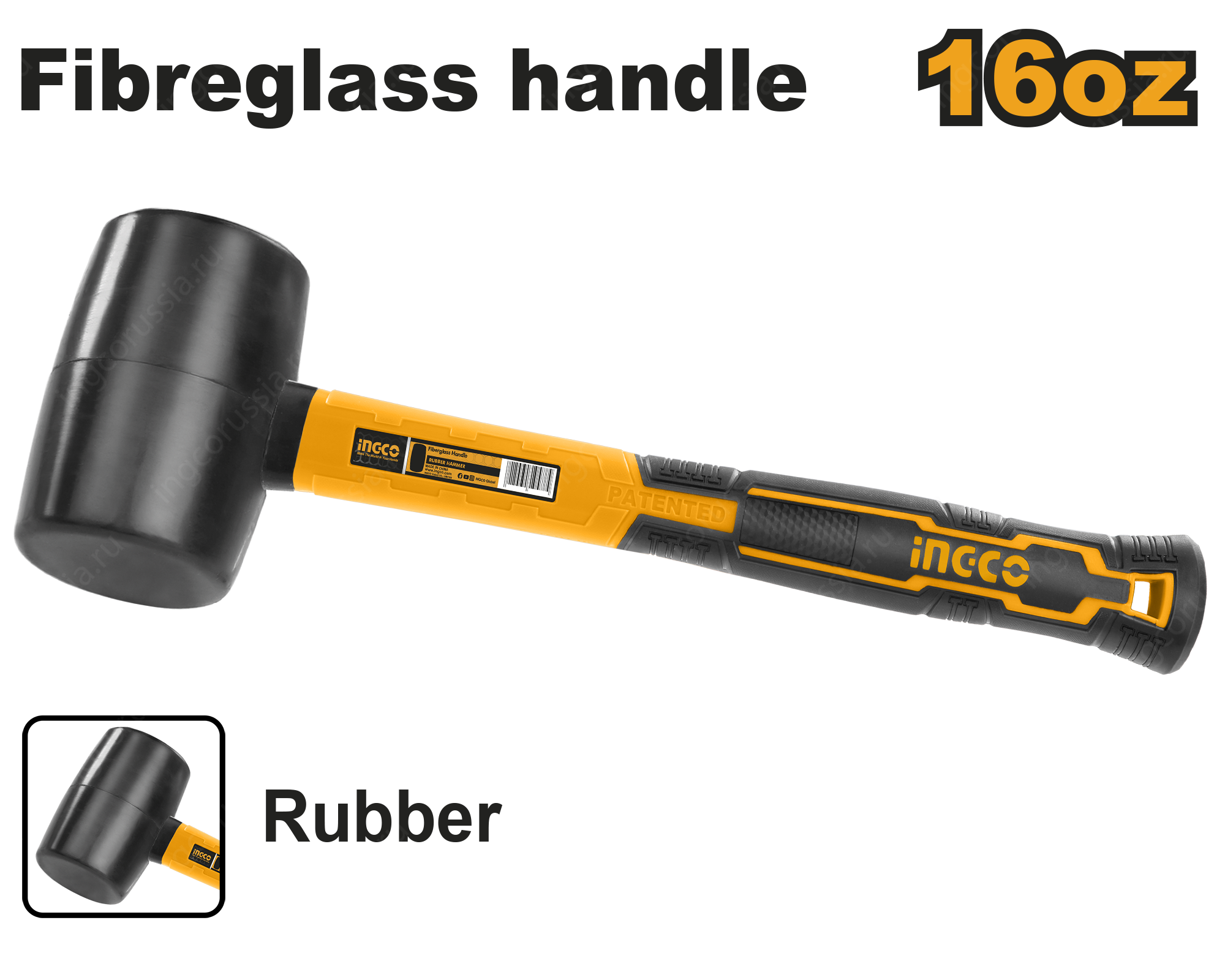 Киянка резиновая 450 гр. INGCO HRUH8216 удобный и надежный инструмент, при помощи которого можно эффективно работать на строительной площадке, выполнять силовые операции при укладке кирпича или блоков.
