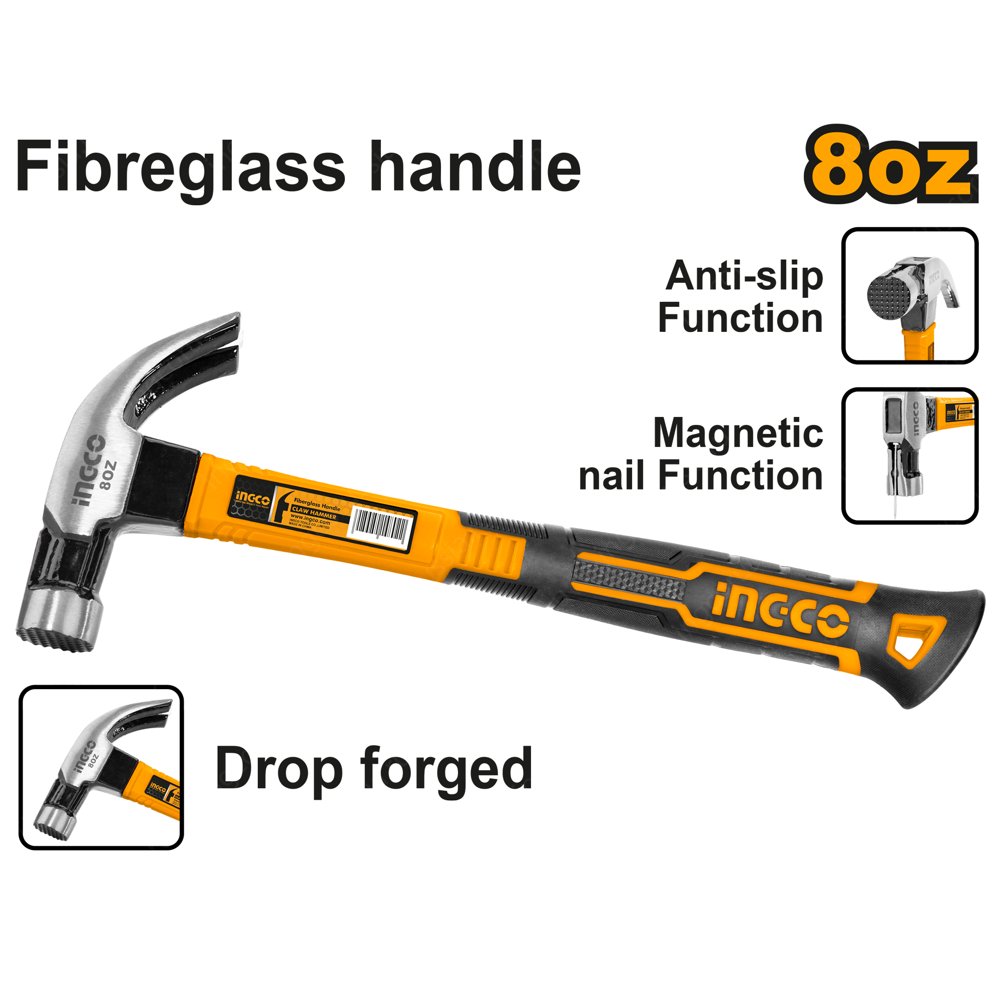 Молоток кровельщика 220 гр. INGCO HCHD0086 INDUSTRIAL это ручной ударный инструмент с рифленным круглым бойком с одной стороны, а также гвоздодером - с другой. Инструмент широко используется в сфере столярных работ.