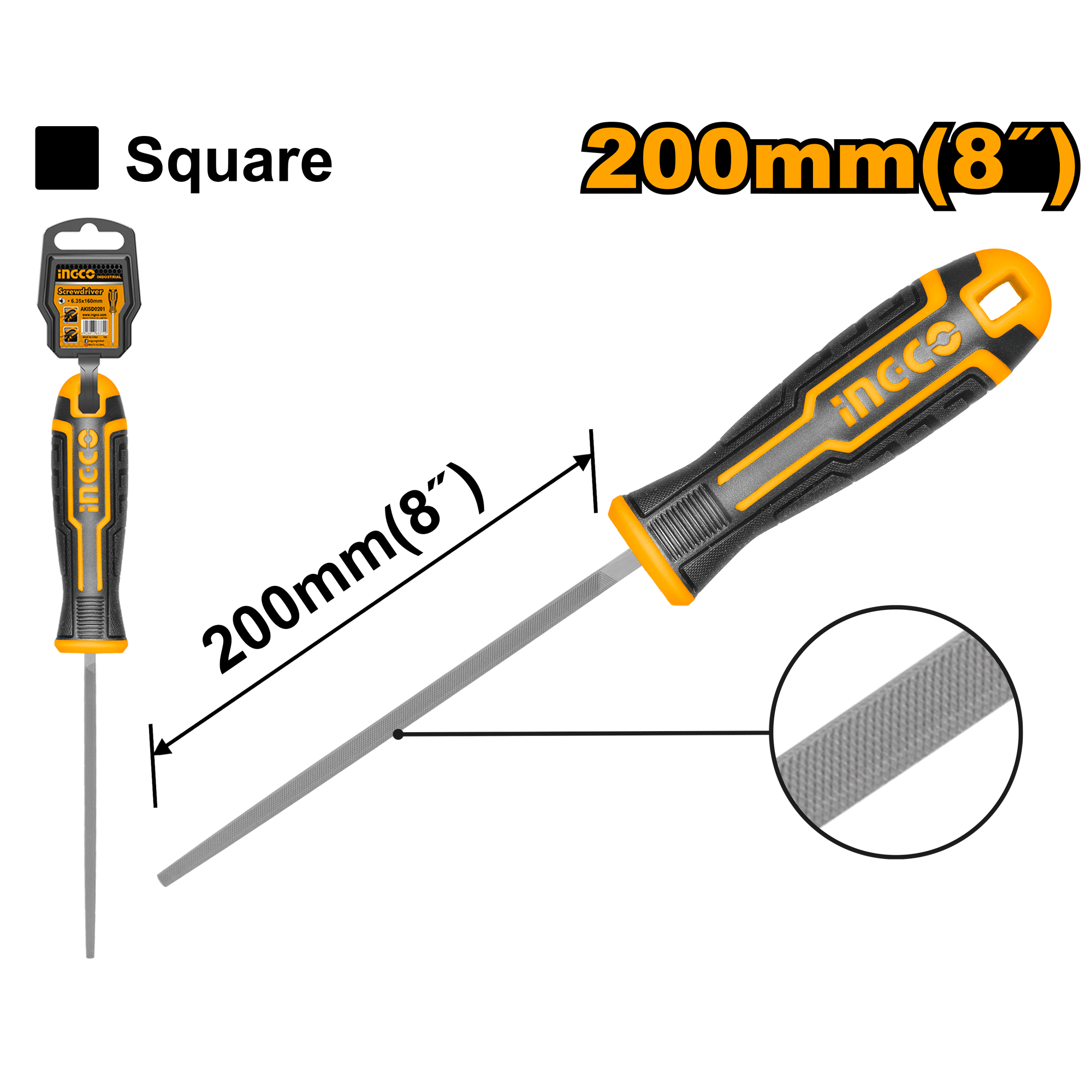 Напильник квадратный 200 мм INGCO HSSF088 INDUSTRIAL обеспечивает эффективную обработку деталей и заготовок из металла. Инструмент подходит для опила плоских и вогнутых поверхностей, пазов, фасок, кромок и выступов, а также обрезки заусенцев.
