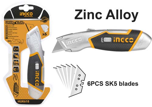 Нож с выдвижным лезвием INGCO HUK618 INDUSTRIAL- это универсальный инструмент, имеющий широкую сферу применения - с помощью него можно быстро и аккуратно разрезать такие материалы, как линолеум, картон, обои и др.