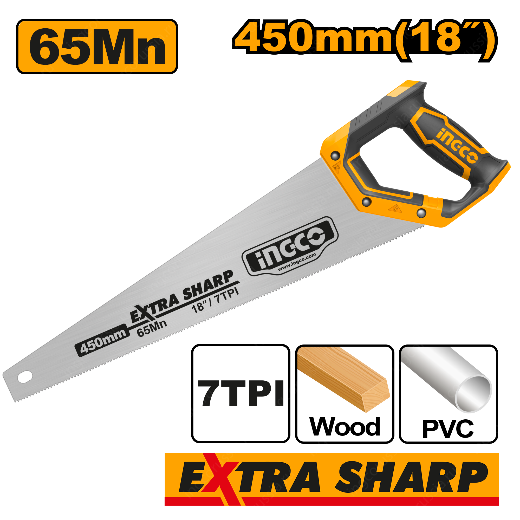 Ножовка по дереву 450 мм INGCO HHAS15450 SUPER SELECT используется для распиловки деревянных деталей.