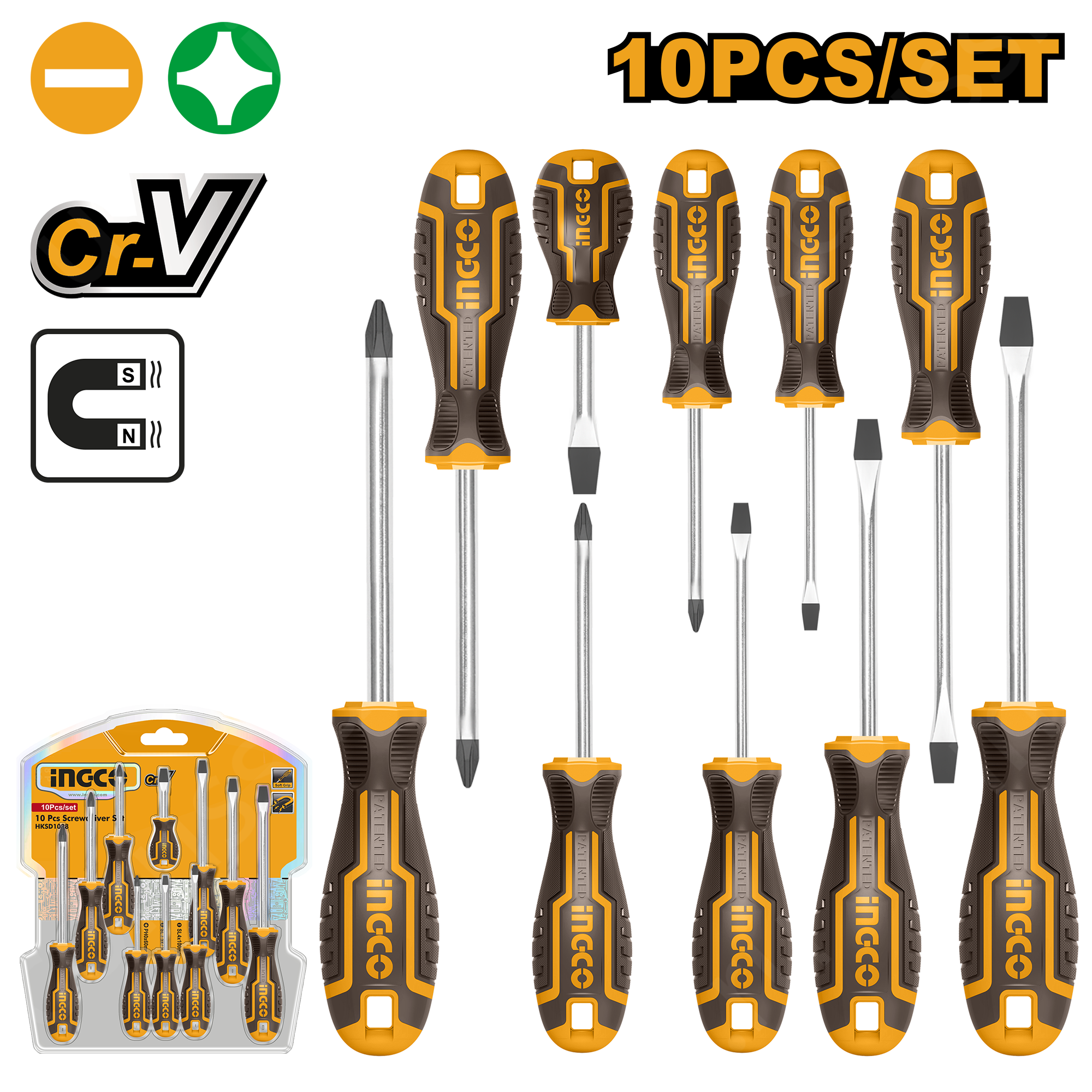 Набор отверток из 10 шт INGCO HKSD1028 INDUSTRIAL применяется для монтажа и демонтажа резьбовых соединений.